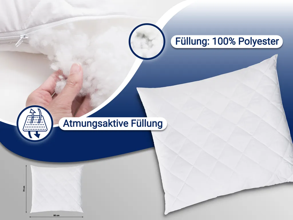 Откройте для себя идеальную подушку для каждой комнаты в вашем доме и за его пределами! Хотите ли вы сделать свою спальню, гостевую или детскую комнату уютнее - наши высококачественные подушки станут идеальным решением. Эти подушки размером 70x80 см не только обеспечивают оптимальный комфорт, но и универсальны. Состав материала 50% полиэстера и 50% хлопка обеспечивает приятные ощущения и долговечность. Вы можете положиться на нашу подушку, чтобы добавить стильный и комфортный элемент в ваш дом. Простота ухода имеет первостепенное значение для этих подушек. Их можно стирать при температуре до 95°C и сушить в стиральной машине при низкой температуре. Это гарантирует свежесть и гигиеничность подушек, независимо от того, используются ли они в детской комнате, спальне или гостевой комнате. Подушки также идеально подходят для путешествий. Их легко перевозить, и они обеспечивают комфортную поддержку в пути. В машине, в самолете или поезде - наслаждайтесь комфортом, где бы вы ни находились. Выбирайте качество и функциональность для своего дома. Наши подушки сочетают в себе элегантный дизайн, материалы, не требующие особого ухода, и универсальность применения. Подарите себе или своим гостям спокойный сон и приятный отдых в любой комнате. Выберите наш комфорт сегодня и почувствуйте разницу! Окунитесь в мир ZOLLNER, где текстиль становится событием. Наш бренд - это символ качества, и его ежедневно ценят в первоклассных отелях, ресторанах и клиниках.