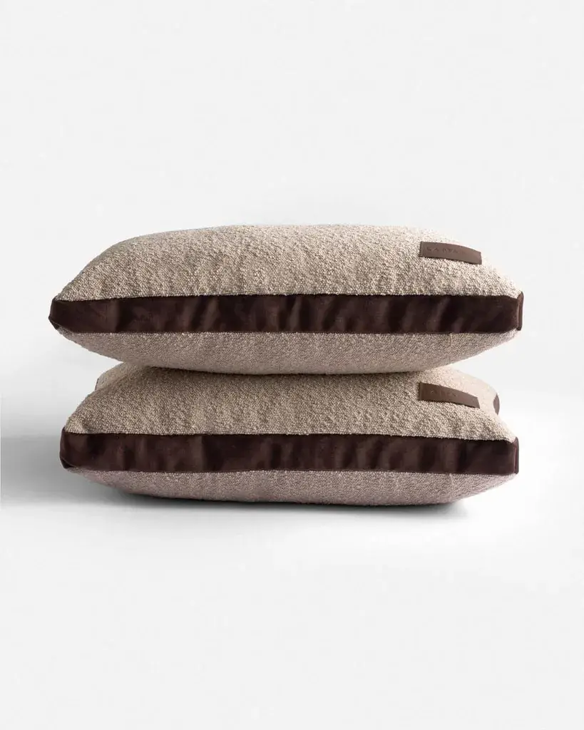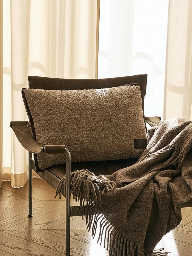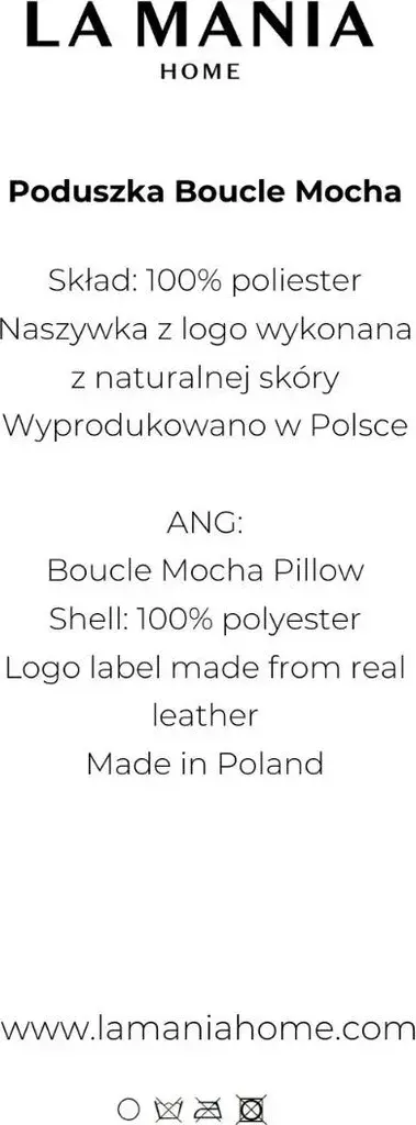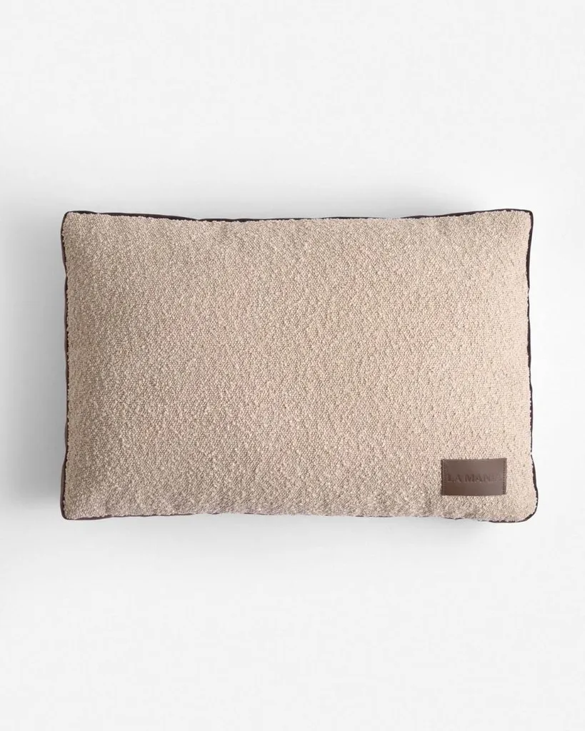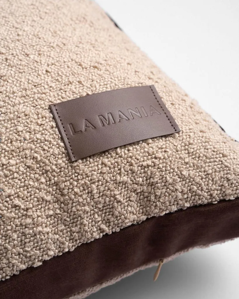 Эта подушка теплого коричневого оттенка выполнена из мягкой ткани букле. Ее минималистичный дизайн и цвет гармонично дополняют как светлый, так и темный интерьер. Подушка дополнена бархатной отделкой и кожаной этикеткой с тисненым логотипом La Mania. Рекомендуем химчистку без использования агрессивных или хлорсодержащих моющих средств.