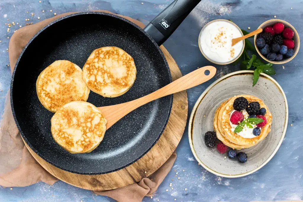 Описание продукта: Сковорода ELO Granit Evolution Ø 24 см. Сковорода Granit Evolution от ELO отличается высочайшим качеством и современным дизайном для идеальной жарки с минимальным количеством жира. Благодаря сверхшероховатой микросотовой поверхности масло распределяется равномерно, обеспечивая оптимальное приготовление и хрустящую корочку. Антипригарное покрытие ELODUR Professional предотвращает пригорание и облегчает очистку. Элегантная черная ручка из бакелита с отделкой из нержавеющей стали имеет эргономичную форму и удобно лежит в руке. Сковорода подходит для всех типов варочных панелей, включая индукционные, и ее можно мыть в посудомоечной машине. Основные преимущества сковороды Granit Evolution: Сверхшероховатая поверхность для идеально хрустящей корочки; Профессиональное антипригарное покрытие ELODUR - предотвращает пригорание и облегчает очистку; Высококачественный кованый алюминий для равномерного распределения тепла; Экономия энергии благодаря эффективной передаче тепла к краям; Эргономичный дизайн с ободом из нержавеющей стали и пламегасителем; Подходит для всех типов варочных панелей, включая индукционные; Можно мыть в посудомоечной машине - не содержит вредных веществ; Устойчива к царапинам для долговечности. Характеристики сковороды Granit Evolution: Серия: Granit Evolution; Материал: Алюминий; Внутреннее покрытие: ELODUR Professional; Диаметр: 24 см; Диаметр дна: 17,5 см; Высота: 5 см; Объем: 1,3 л; Толщина стенок: 2,9 мм; толщина дна: 5,1 мм - без вредных веществ. ELO представляет новое поколение посуды с революционным антипригарным покрытием ELODUR, которое не содержит вредных веществ, известных своей стойкостью в природе и потенциальным негативным воздействием на здоровье. Переход на технологию без CO2 сочетает высокое качество с экологичным подходом, который защищает вас и окружающую среду. ELODUR Professional: ELODUR Professional - вершина инноваций в области антипригарных покрытий. Оно не содержит CO2 и PTFE и изготовлено на основе минерально-керамической формулы. Это покрытие разработано для максимальной прочности и длительного срока службы, отвечая требованиям даже самых взыскательных поваров. ELODUR Professional чрезвычайно устойчиво к царапинам и обеспечивает долговечный антипригарный эффект. Оно позволяет жарить на низком уровне жира и, благодаря своим антипригарным свойствам, значительно облегчает очистку. Исключительная износостойкость делает его чрезвычайно прочным и идеальным для профессионального и интенсивного домашнего использования. ТЕХНОЛОГИЯ CRISPY-TOUCH: Сковороды серии GRANIT изготовлены из высококачественного кованого алюминия и устанавливают новые стандарты жарки. Благодаря особой сотовой микроструктуре масло равномерно распределяется по поверхности и остается там, где ему и положено быть. Это обеспечивает идеальную жарку с минимальным расходом жира. Утолщенная поверхность обеспечивает равномерное прожаривание и хрустящую текстуру, независимо от того, готовите ли вы рыбу, яйца, мясо или овощи. GRANIT чрезвычайно устойчива к царапинам, легко моется и идеально подходит для тех, кто хочет добиться профессиональных результатов на кухне. Комплект поставки сковороды Granit Evolution: 1 сковорода Granit Evolution диаметром 24 см. Применение сковороды Granit Evolution: приготовление здоровой пищи с низким содержанием жира; жарка мяса, овощей, яиц и других блюд; подходит для домашней и профессиональн