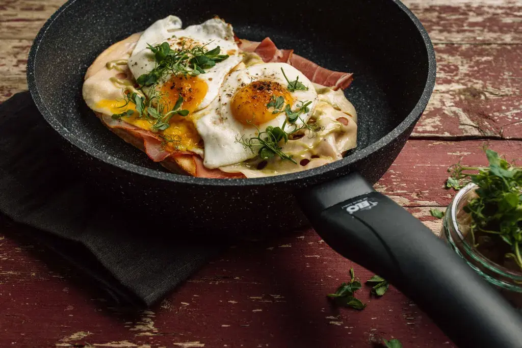 Описание продукта: Сковорода Granit Evolution ELO Ø 20 см. Сковорода Granit Evolution от ELO отличается высочайшим качеством и современным дизайном для идеальной жарки с минимальным количеством жира. Благодаря сверхшероховатой микросотовой поверхности масло распределяется равномерно, обеспечивая оптимальное приготовление и хрустящую корочку. Антипригарное покрытие ELODUR Professional предотвращает пригорание и облегчает очистку. Элегантная черная ручка из бакелита с отделкой из нержавеющей стали имеет эргономичную форму и удобно лежит в руке. Сковорода подходит для всех типов варочных панелей, включая индукционные, и ее можно мыть в посудомоечной машине. Основные преимущества сковороды Granit Evolution: Сверхшероховатая поверхность для идеально хрустящей корочки; Профессиональное антипригарное покрытие ELODUR - предотвращает пригорание и облегчает очистку; Высококачественный кованый алюминий для равномерного распределения тепла; Экономия энергии благодаря эффективной передаче тепла к краям; Эргономичный дизайн с ободом из нержавеющей стали и пламегасителем; Подходит для всех типов варочных панелей, включая индукционные; Можно мыть в посудомоечной машине - не содержит вредных веществ; Устойчива к царапинам для долговечности. Характеристики сковороды Granit Evolution: Серия: Granit Evolution; Материал: Алюминий; Внутреннее покрытие: ELODUR Professional; Диаметр: 20 см; Диаметр дна: 14,5 см; Высота: 4,5 см; Объем: 0,8 л; Толщина стенок: 2,5 мм; толщина дна: 4,7 мм - без вредных веществ. ELO представляет новое поколение посуды с революционным антипригарным покрытием ELODUR, которое не содержит вредных веществ, известных своей стойкостью в природе и потенциальным негативным воздействием на здоровье. Переход на технологию без CO2 сочетает высокое качество с экологичным подходом, который защищает вас и окружающую среду. ELODUR Professional: ELODUR Professional - вершина инноваций в области антипригарных покрытий. Оно не содержит CO2 и PTFE и изготовлено на основе минерально-керамической формулы. Это покрытие разработано для максимальной прочности и длительного срока службы, отвечая требованиям даже самых взыскательных поваров. ELODUR Professional чрезвычайно устойчиво к царапинам и обеспечивает долговечный антипригарный эффект. Оно позволяет жарить на низком уровне жира и благодаря своим антипригарным свойствам значительно облегчает очистку. Исключительная износостойкость делает его чрезвычайно прочным и идеальным для профессионального и интенсивного домашнего использования. ТЕХНОЛОГИЯ CRISPY-TOUCH: Сковороды серии GRANIT изготовлены из высококачественного кованого алюминия и устанавливают новые стандарты жарки. Благодаря особой сотовой микроструктуре масло равномерно распределяется по поверхности и остается там, где ему и положено быть. Это обеспечивает идеальную жарку с минимальным расходом жира. Утолщенная поверхность обеспечивает равномерное прожаривание и хрустящую текстуру, независимо от того, готовите ли вы рыбу, яйца, мясо или овощи. GRANIT чрезвычайно устойчива к царапинам, легко моется и идеально подходит для тех, кто хочет добиться профессиональных результатов на кухне. Комплект поставки сковороды Granit Evolution: 1 сковорода Granit Evolution диаметром 20 см. Применение сковороды Granit Evolution: приготовление здоровой пищи с низким содержанием жира; жарка мяса, овощей, яиц и других блюд; подходит для домашней и профессиональн