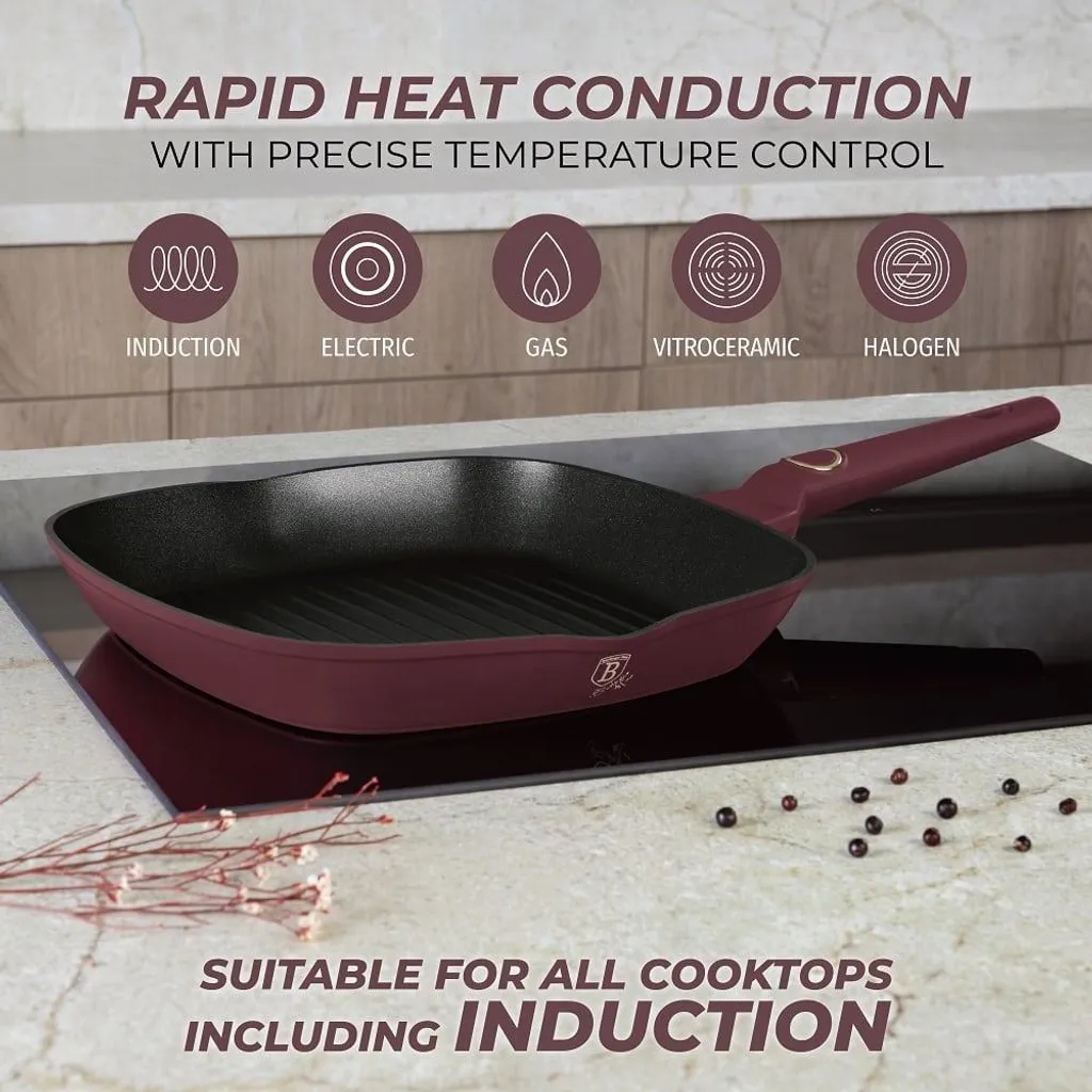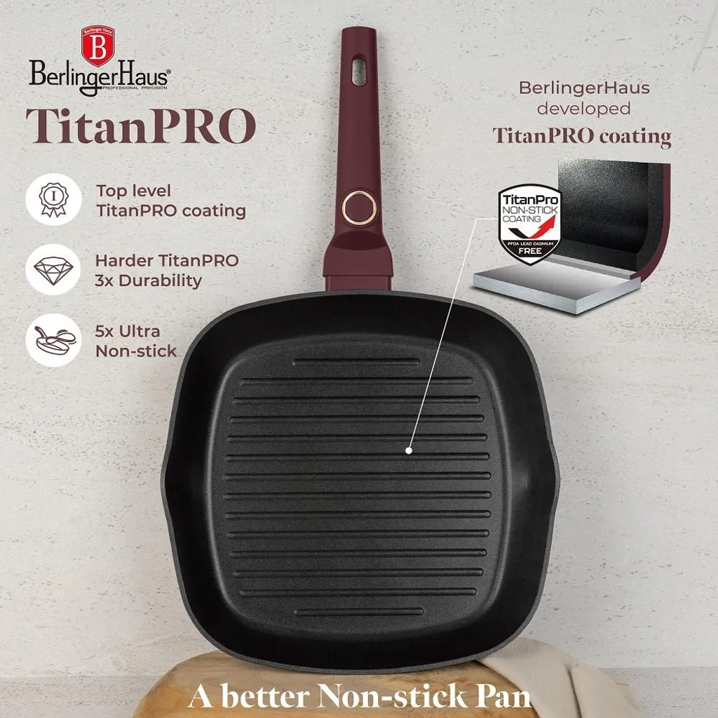 Выведите свои навыки гриля на новый уровень с сковородой-гриль Berliner Haus BH8036 Leonardo. Будь то идеально прожаренные стейки, хрустящие овощи или сочные бургеры - эта сковорода обеспечит качество ресторана прямо на вашей кухне. Благодаря матовой отделке бордо и высококачественному антипригарному покрытию TitanPro она сочетает в себе функциональность, долговечность и элегантный дизайн.