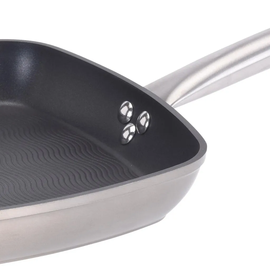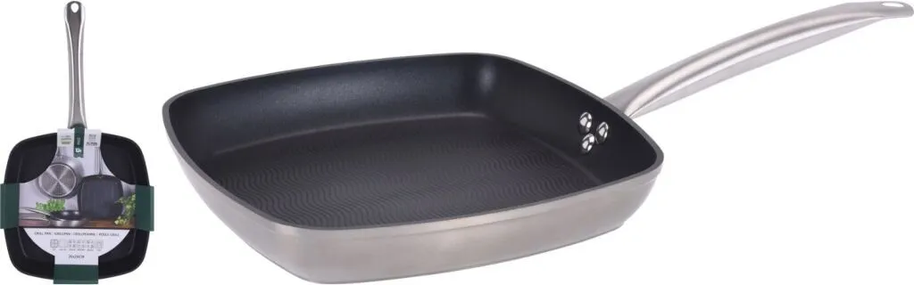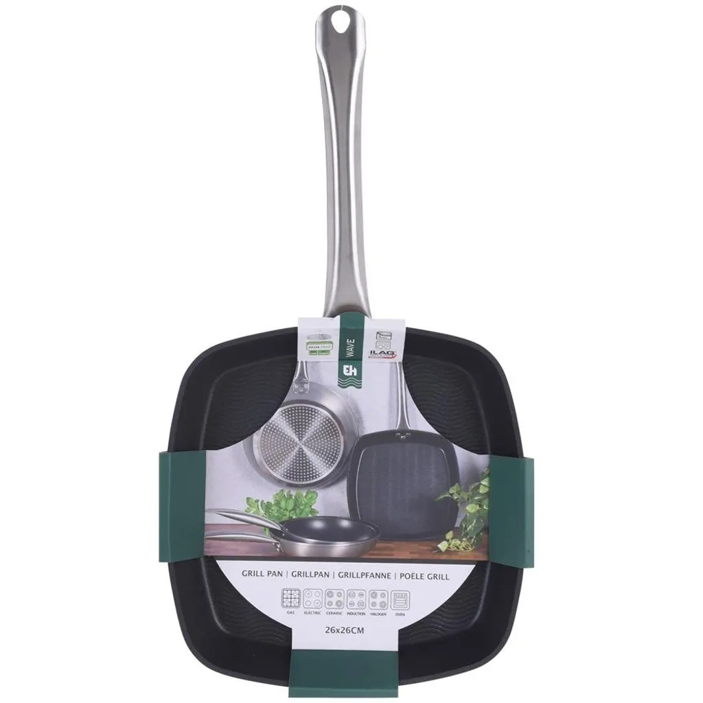 Сковорода-гриль EH 26 x 26 см. Эта сковорода-гриль от EH изготовлена из кованого алюминия и идеально подходит для вкусного приготовления на гриле. Сковорода имеет прочную, ненагревающуюся ручку, поэтому ручка не нагревается так быстро. Сковорода также имеет антипригарное покрытие, которое гарантирует, что ваша еда не пригорит к сковороде. Сковорода не содержит PFOA, поэтому во время приготовления не выделяются токсичные вещества! Сковорода подходит для приготовления пищи на газовых, электрических, галогенных, керамических и индукционных плитах, а также может использоваться в духовке. Сковороду также можно мыть в посудомоечной машине. Мы не рекомендуем использовать железные приборы в сковороде, так как это может ее повредить. Хотите купить сковороду-гриль EH? Если сковорода-гриль EH 26 x 26 см вам не подходит, ознакомьтесь с другими товарами из серии Kitchen Basics здесь. Или ознакомьтесь с нашим широким ассортиментом сковород-гриль.