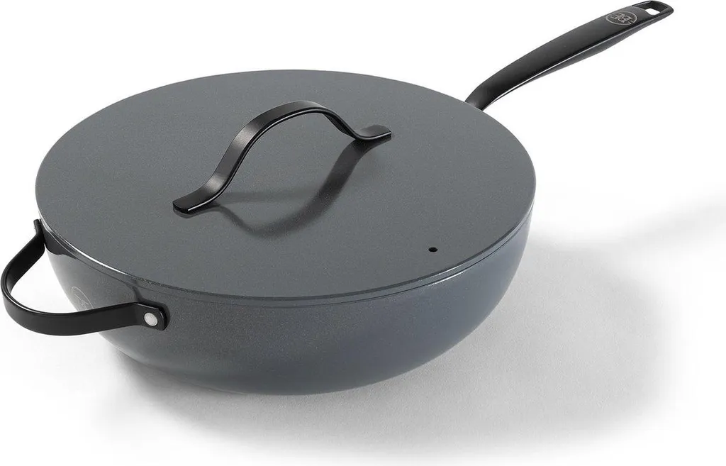 BE Living представляет сковороду-вок серого цвета диаметром 30 см, которая идеально подходит для всех источников нагрева, включая индукцию, и не содержит ПФАС. Незаменимое дополнение к любой современной кухне.