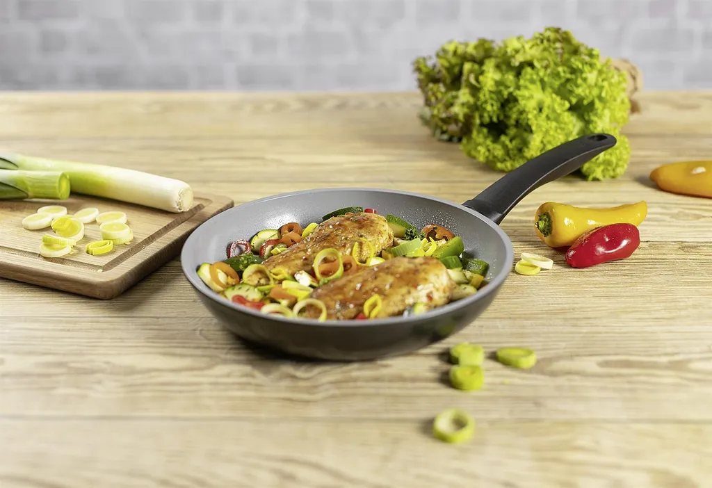 Сковорода EASY CERAMIC более экологична, чем большинство других сковород, поскольку изготовлена из высококачественного, на 100% переработанного алюминия, и потребляет на 95% меньше энергии, чем обычные алюминиевые сковороды. Высококачественный переработанный алюминий даже прочнее чистого алюминия, поскольку он изготовлен из различных алюминиевых сплавов, что делает сковороду более долговечной. Благодаря дну с индукционным кольцом по всей поверхности и превосходным свойствам алюминия, тепло распределяется равномерно, что обеспечивает наилучшие результаты жарки и больше удовольствия. Усиленное керамическое покрытие делает сковороду EASY CERAMIC идеальной для жарки нежных овощей, панированного/маринованного мяса и хрустящего картофеля. Важно всегда использовать немного масла или жира, чтобы предотвратить пригорание. Керамическое покрытие обладает отличной теплопроводностью, что делает жарку хрустящей пищи еще более приятной. Кроме того, гладкая поверхность облегчает очистку, так как сковороду можно быстро очистить с помощью небольшого количества воды и средства для мытья посуды. Эргономичная ручка из бакелита остается холодной даже при высоких температурах и очень удобно лежит в руке. Рекомендуется мыть вручную. Легко и быстро очищается благодаря гладкой поверхности. Подходит для всех типов плит, включая индукционные. Можно использовать в духовке при температуре до 220 °C (осторожно: ручка может нагреваться).