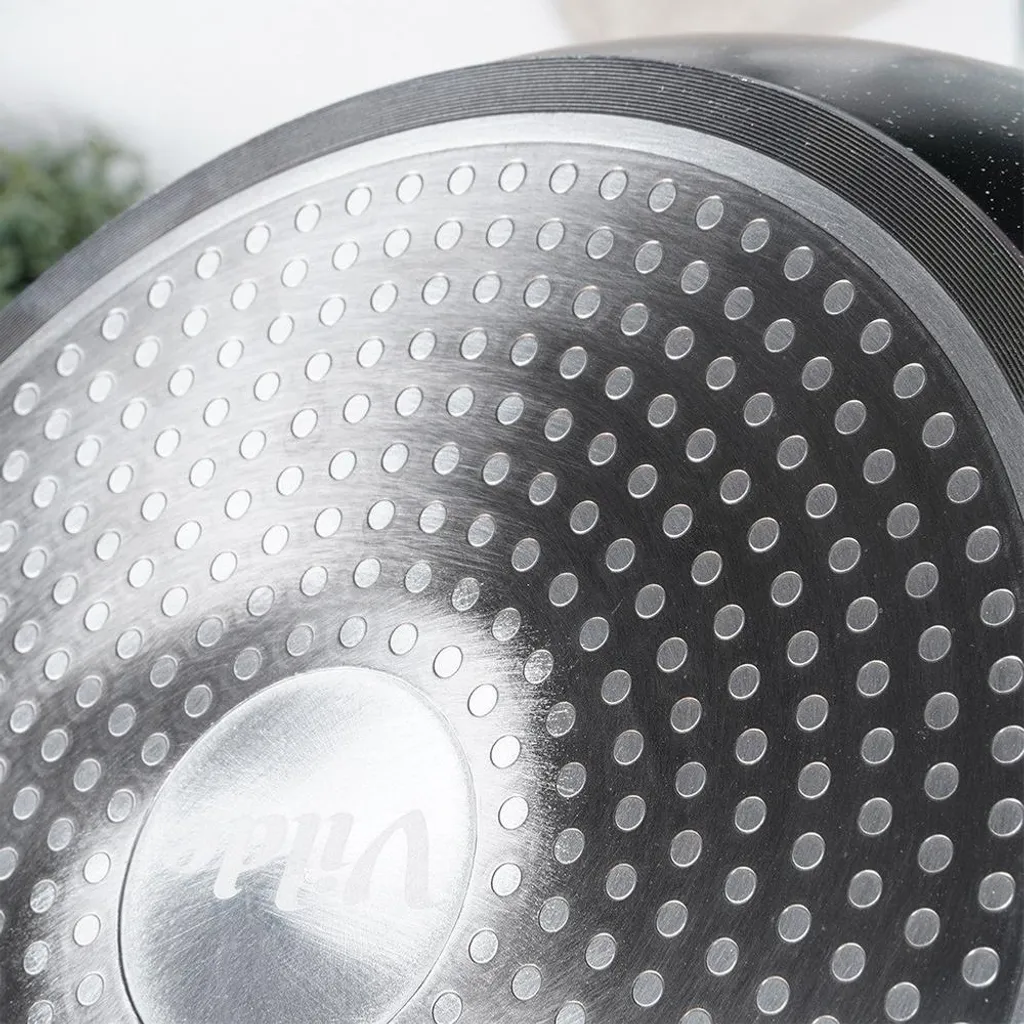 Удобная, ненагревающаяся ручка - Нескользящая, ненагревающаяся ручка обеспечивает комфортное и безопасное использование и надежный захват во время приготовления. Сковорода также имеет удобное отверстие для подвешивания, например, на кухонную рейку.