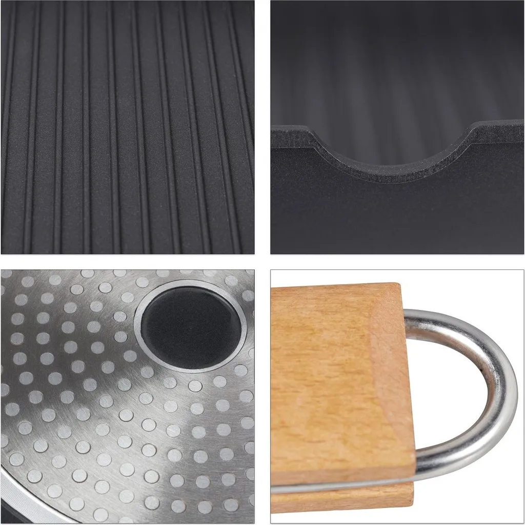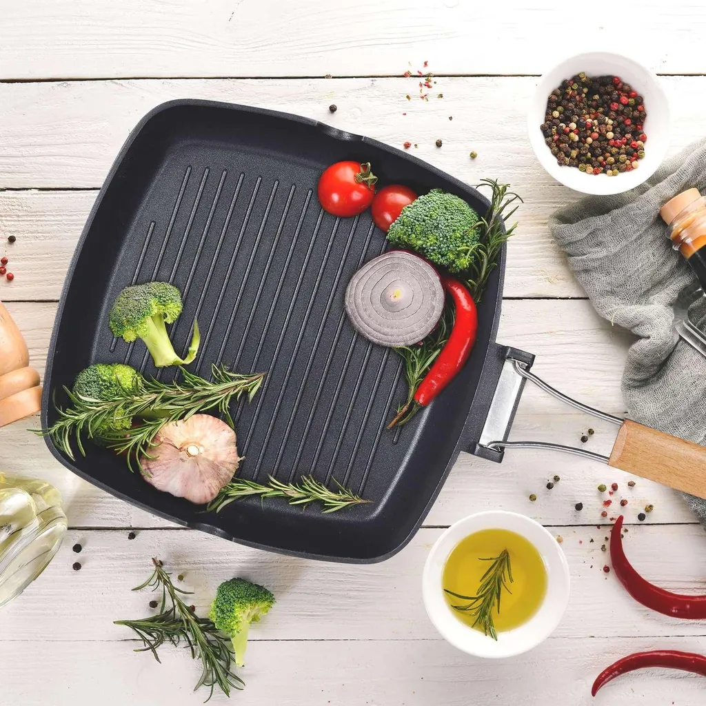 Эта индукционная сковорода делает приготовление пищи легким - идеально подходит для жарки сочных стейков и овощей на гриле, даже после окончания сезона гриля. Ребристая конструкция обеспечивает стекание лишнего жира, в результате чего получаются более здоровые, нежирные блюда. Антипригарное покрытие упрощает очистку. Практичная деревянная ручка складывается для компактного хранения или используется как крюк для подвешивания для легкого доступа. Готовьте на гриле с комфортом в помещении, даже вне сезона. Ребристая поверхность позволяет стекать лишнему жиру, в результате чего получаются более полезные блюда. Антипригарное покрытие упрощает очистку. Экономящая место складная деревянная ручка. Удобное подвесное хранение. Обжариваете ли вы стейк или поджариваете овощи, эта индукционная сковорода станет вашим идеальным помощником на кухне. Ее продуманный дизайн не только улучшает ваши кулинарные впечатления, но и помогает поддерживать порядок на кухне. Готовы вывести свою кулинарию на новый уровень? Добавьте эту универсальную сковороду в свою коллекцию сегодня и наслаждайтесь легкой и здоровой готовкой круглый год.
