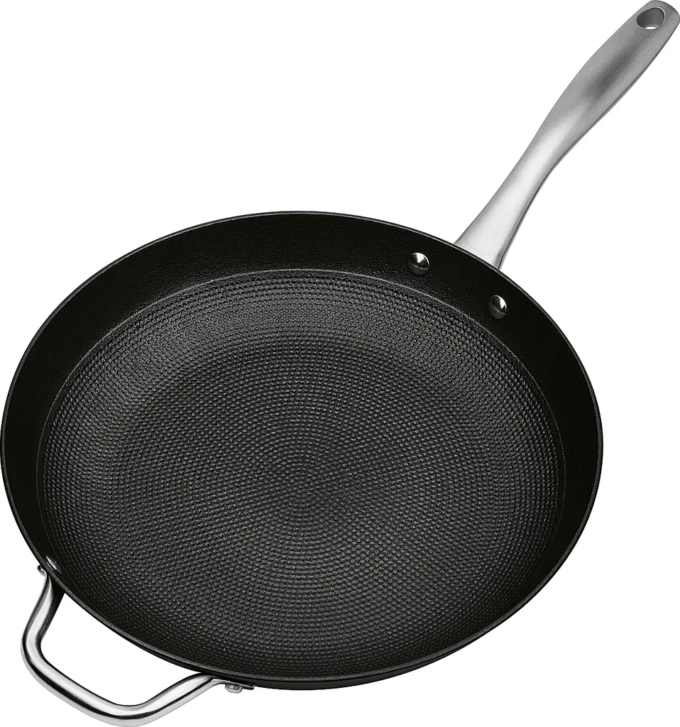 Эти сковороды особенно подходят для профессиональных кухонь - идеально подходят для хрустящей жарки. Внутренняя часть имеет новое антипригарное покрытие VITAFLONQUARZITE без ПФАС с высококачественной блестящей отделкой. Сковорода обладает превосходными антипригарными свойствами, чрезвычайно твердая и устойчива к царапинам. Дно имеет сотовый рисунок для лучшего распределения масла и жира, а также оптимизированного и быстрого нагрева. Ручки из нержавеющей стали прочные и надежно закреплены заклепками. Эти сковороды подходят для всех видов плит, включая индукционные. Можно использовать в духовке при температуре до 240 °C. Материал: чугун/стекло. Размеры: Ø 28 см, В 5,3 см.