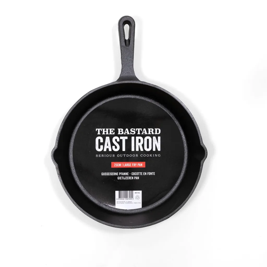 Больше возможностей для вашего камадо-гриля! Большая чугунная сковорода Bastard Frypan Cast Iron Large предлагает вам еще больше возможностей для приготовления блюд на камадо-гриле. Вы можете использовать ее как для жарки любых видов, так и для выпечки. Сковорода изготовлена из чугуна и имеет диаметр 25 см. Чугун славится равномерным распределением тепла, поэтому ее можно использовать на всех типах грилей. Ее можно даже использовать на костре.