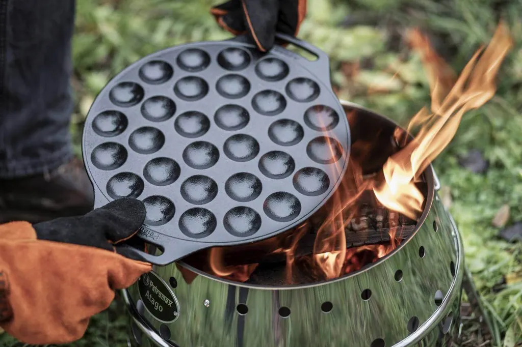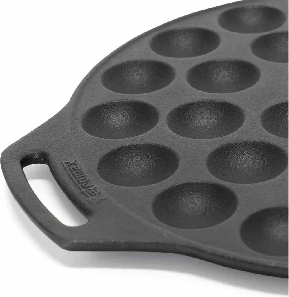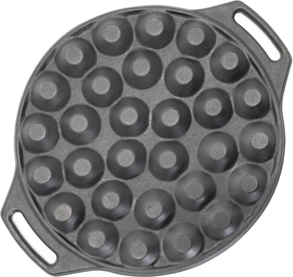 Сковорода poffertjes изготовлена из прочного чугуна, поэтому ее можно без проблем использовать для выпечки на открытом огне или на тлеющих углях.