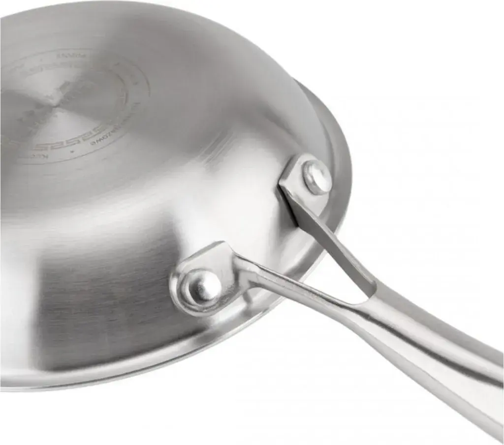 Благодаря этому решению сковорода более долговечна, устойчива к царапинам и безопасна для использования с металлическими кухонными принадлежностями.