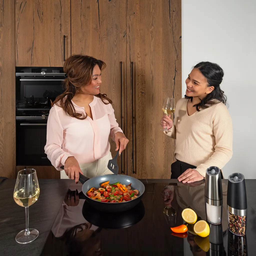В BE Living ваша безопасность превыше всего. Сковороды полностью не содержат ПФАС, поэтому вы можете готовить со спокойной душой, зная, что вредные химические вещества, содержащиеся в некоторых антипригарных покрытиях, не попадут в вашу еду. Это делает их ответственным выбором для вас и вашей семьи.