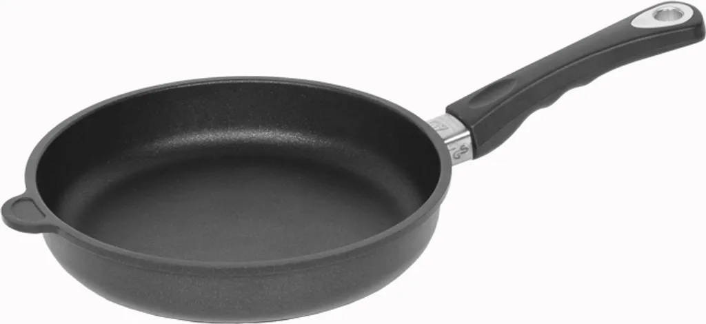 Разрез чугунной сковороды AMTКастрюли и сковороды производства AMT одинаково подходят как для профессиональных, так и для домашних хозяйств. Дно толщиной 8-10 мм для оптимального распределения и удержания тепла, два различных покрытия, подходящие стеклянные крышки, различные варианты ручек и доступность практически всех диаметров и высот гарантируют, что ни одно требование клиента не останется неудовлетворенным.