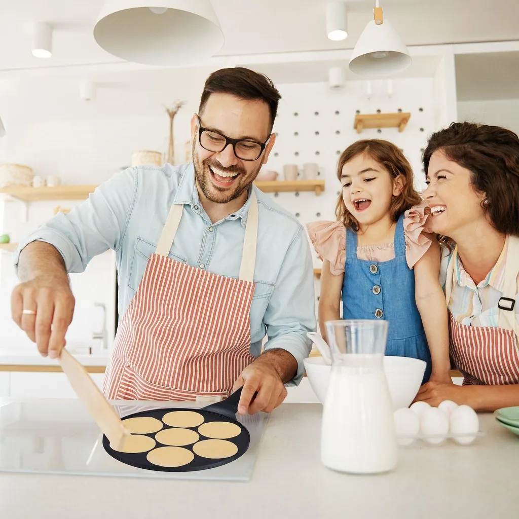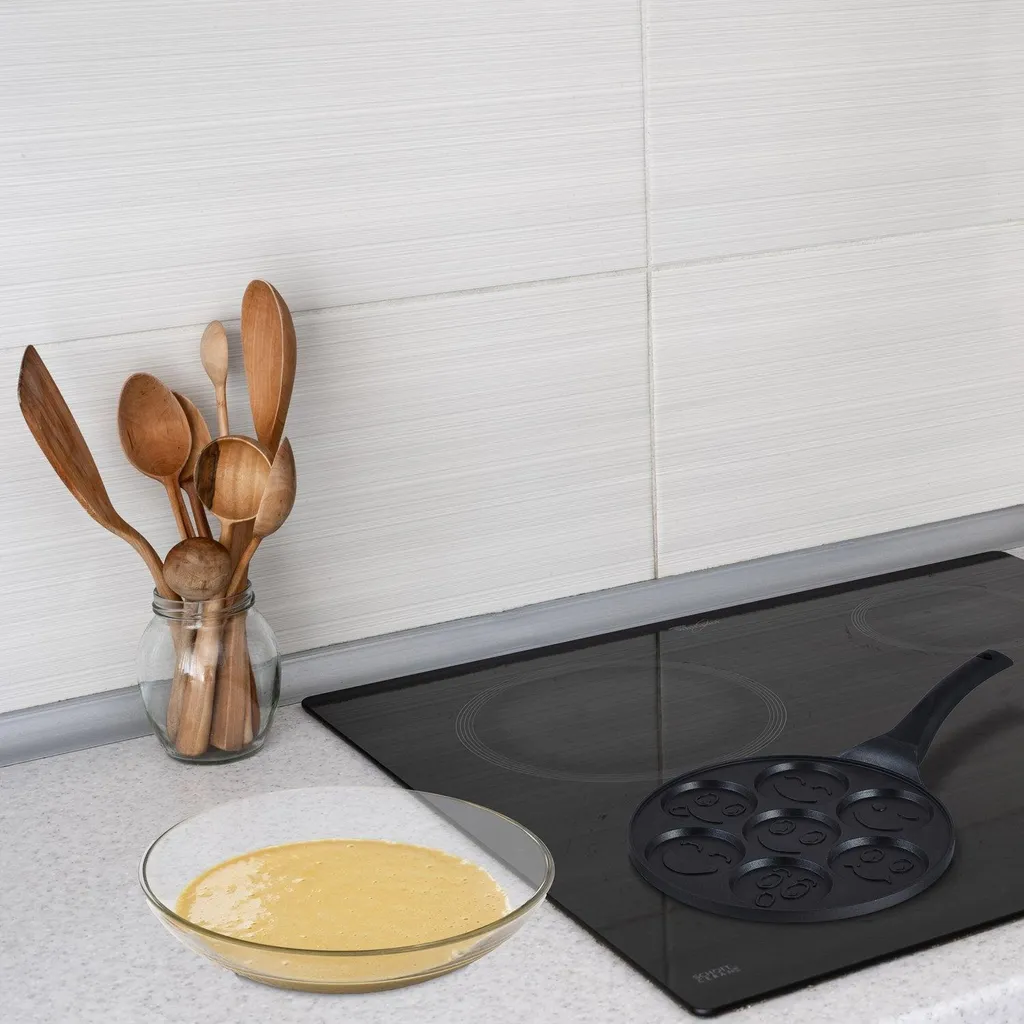Сковорода для блинов с 7 забавными рожицамиНачните свой день с улыбки, используя нашу сковороду для блинов с 7 забавными рожицами. Идеально подходит для того, чтобы удивить семью и друзей вкусным и веселым завтраком, который оценят как дети, так и взрослые. Эта алюминиевая сковорода обеспечивает равномерное распределение тепла для идеально прожаренных блинов. Благодаря антипригарному покрытию вы можете легко переворачивать и подавать блины. Наша универсальная сковорода для блинов совместима с любыми плитами, что делает ее незаменимым кухонным инструментом.
