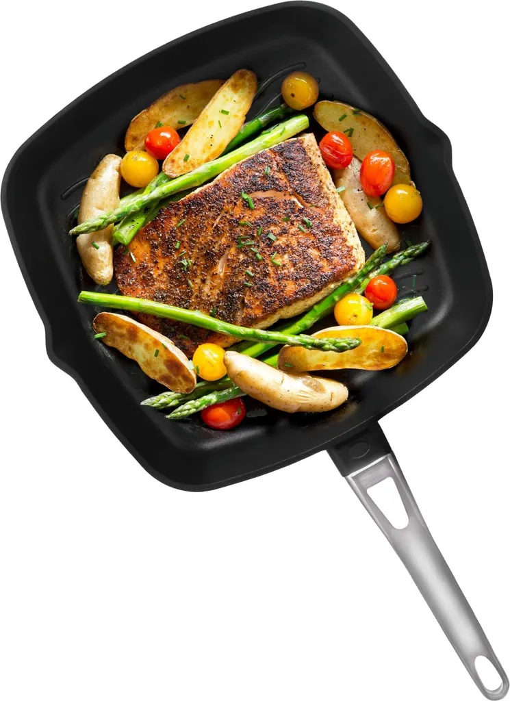 • Эргономичный дизайн: Изготовленная из литого алюминия и нержавеющей стали, сковорода не только легкая, но и чрезвычайно прочная. Ее эргономичная форма обеспечивает комфорт во время приготовления, а длинная ручка позволяет легко обращаться с ней.