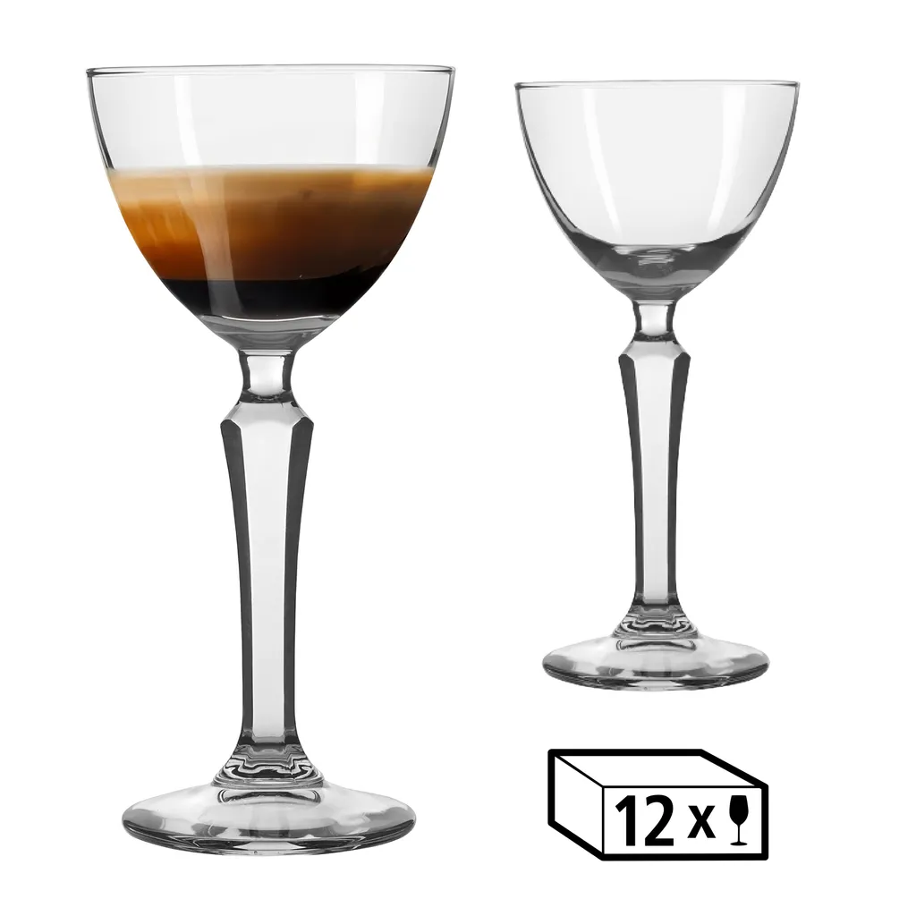 Набор из 12 бокалов Nick & Nora из серии Libbey's Speakeasy привнесет в ваш бар гламур 1920-х годов. Объем 141 мл, диаметр 8 см и высота 16 см идеально подходят для мартини, коктейлей Манхэттен и изысканных коктейлей. Элегантный дизайн удобно держать в руке, а высококачественное стекло можно мыть в посудомоечной машине. Идеально подходит для баров, коктейльных вечеринок или в качестве стильного подарка - напоминание об эпохе сухого закона в вашем доме.