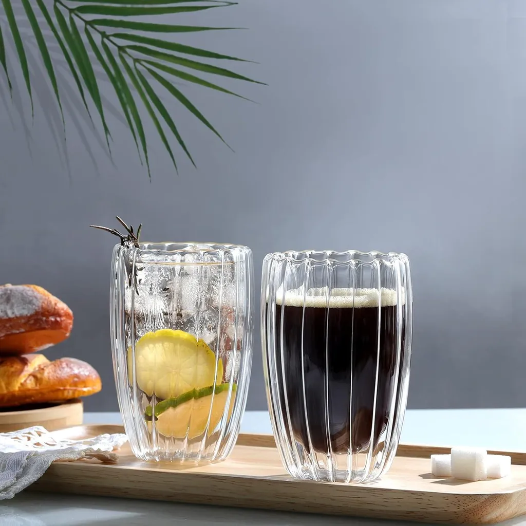 Наслаждайтесь горячими напитками в полной мере с этими стаканами с двойными стенками. Двойные стенки, ребристая конструкция обеспечивает удобный захват без обжигания рук. Стаканы изготовлены из высококачественного боросиликатного стекла, что делает их легкими, устойчивыми к царапинам и безопасными в использовании. Преимущества стаканов с двойными стенками: - Теплоизоляция для удобного захвата - Привлекательный и отличительный ребристый дизайн - Изготовлены из 100% бессвинцового стекла - Удобный размер с емкостью 450 мл (15 унций) - Идеально подходят для горячих и холодных напитков. Наслаждайтесь любимыми напитками, такими как латте, капучино или горячий шоколад, стильно с этими стаканами с двойными стенками. Красивый процесс ручного выдувания обеспечивает чистый и прозрачный корпус, а ребристая текстура добавляет уникальный вид. Мы стремимся предоставить удовлетворительное решение в течение 24 часов.