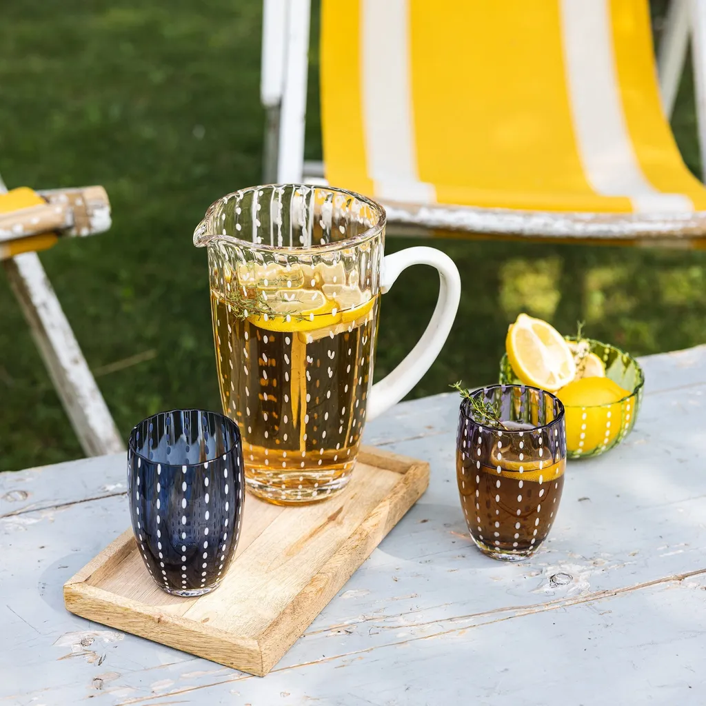 Работы Федерико де Майо вдохновлены самыми визуальными и традиционными линиями, но также включают в себя уникальное техническое содержание, отражающее страсть к инновациям и исследованиям. Zafferano объединяет искусство стеклоделия и культуру виноделия. История Федерико де Майо началась в семейном бизнесе на острове Мурано (Венеция). Именно здесь, в середине 1970-х годов, Федерико де Майо начал работать с художественным стеклом в целом. Ощущение важности и удовольствия от хорошего вина привело его к основанию компании, посвященной разработке и производству дегустационных бокалов. Это мастерство делает каждое изделие уникальным и непохожим на другие, и оттого еще более ценным. Коллекция Perle (Perlen) от Федерико де Майо, сочетающая в себе фольгу и стеклянную пасту, сочетает в себе уникальные материалы и проверенное временем мастерство, полностью ручную работу.Эта коллекция изготовлена по старинному методу стеклоделия: стекло скручивается, а затем разбивается! Zafferano использует это мастерство при создании коллекции Perle. Цветная и прозрачная стеклянная посуда, включающая стаканы для воды, вина и безалкогольных напитков, а также яркие и красочные графины и чаши, призвана подчеркнуть элегантность сервировки стола. Эта коллекция производит поистине особый эффект благодаря сочетанию прозрачности и стеклоподобной керамической основы. Это достигается благодаря сочетанию уникальных материалов и метода полностью ручной отделки стекла, искусно интерпретированного мастерами-стеклодувами.