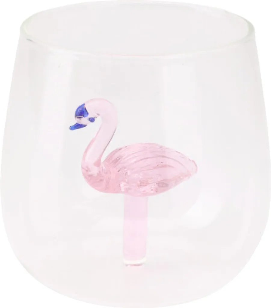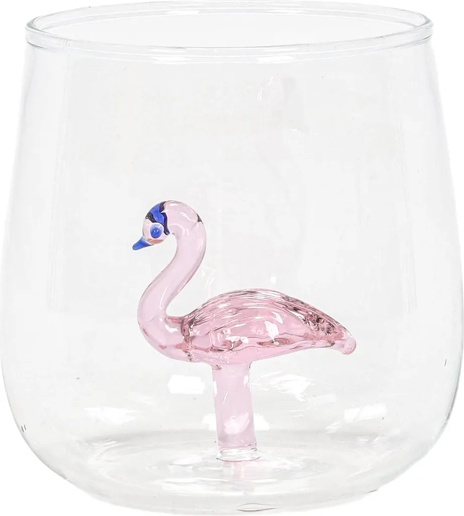 Стакан с фигурками фламинго, пальмы и ананаса 400 мл - уникальный дизайн, который привлечет внимание и добавит индивидуальности любому напитку