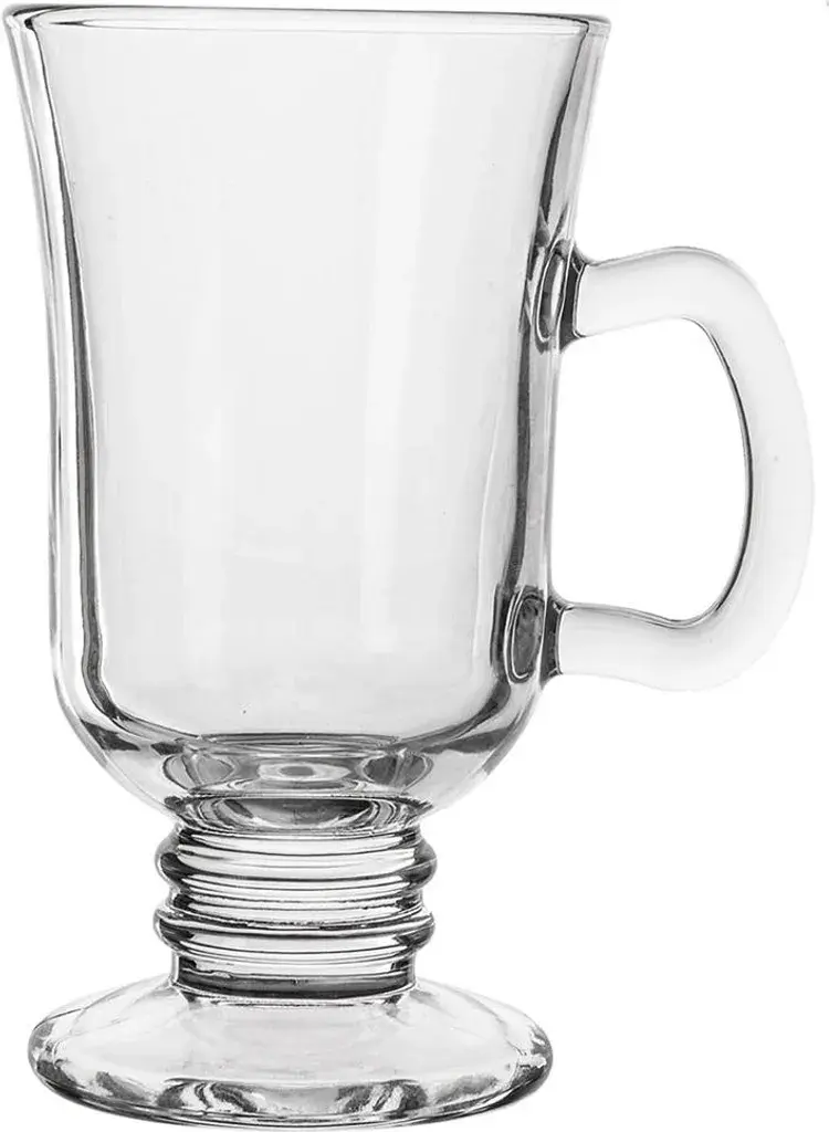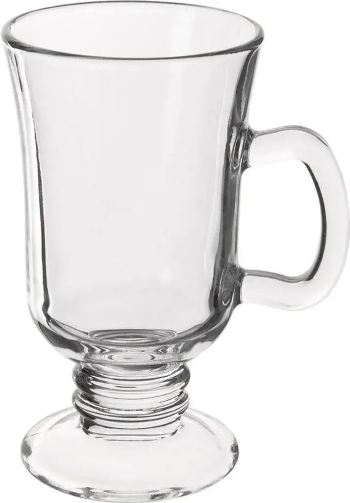 Высокий стакан для кофе и чая - стакан с ручкой и прочной ножкой, идеально подходит для подачи латте, капучино, чая и других горячих напитков, например, глинтвейна. Стакан имеет максимальную емкость 250 мл и размеры 10,5 x 7,7 x 14 см. Изготовлен из прочного стекла - изготовлен из толстого высококачественного стекла прозрачного цвета. Элегантная форма на ножке - классическая, тонкая форма с удобной ручкой и ножкой придает стакану элегантность и эффектно смотрится на столе. Для повседневного использования - идеально подходит для подачи напитков дома, а также в кафе, ресторанах и отелях. Можно мыть в посудомоечной машине - стакан легко мыть, так как его можно мыть в посудомоечной машине. Этот высокий стакан с ручкой - классический и практичный выбор для подачи любимых горячих напитков. Оригинальный продукт чешского бренда Orion. Изготовлен по европейским стандартам. Стеклянная кружка с ручкой для латте макиато, чая и других горячих напитков. Объем: 250 мл. Можно мыть в посудомоечной машине.