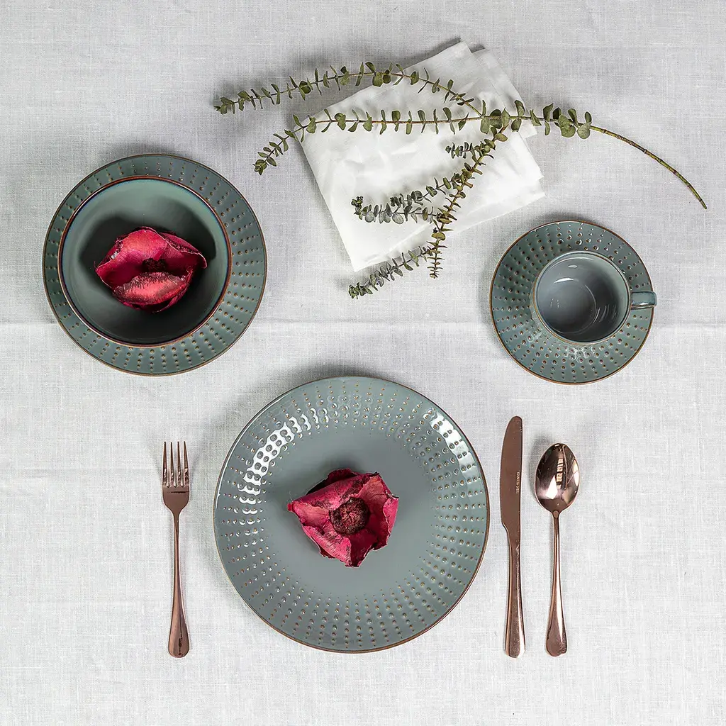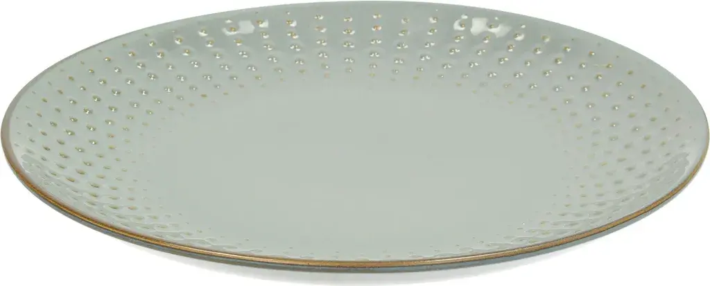 Фарфоровая тарелка. Эта тарелка с необычным дизайном по-настоящему притягивает взгляд. Серо-голубой оттенок в сочетании с античным золотом создает эффектное сочетание. Рельефная поверхность и изящно прорисованный ободок понравятся любому ценителю хорошего стиля. Сочетайте эту тарелку с другими изделиями серии Dossi. Каждая тарелка уникальна и может незначительно отличаться от оригинала. Размер: диаметр: 26 см, высота: 3 см. Можно мыть в посудомоечной машине и микроволновой печи. Мы предлагаем более 70 000 товаров для дизайна интерьера, включая высококачественную мебель, изысканные аксессуары для дома и текстиль. Пусть наши идеи вдохновят вас.