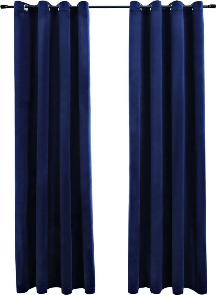 Плотные шторы Maison Exclusive с люверсами, 2 шт., бархат, темно-синий, 140x175 см Prolenta