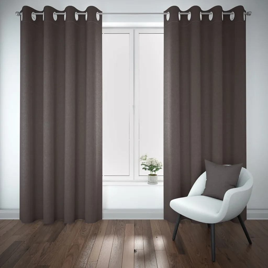 Темно-коричневая плотная штора идеально защитит вас от яркого солнечного света и уличного освещения ночью. В затемненной комнате будет не так жарко, и вы будете спать лучше.