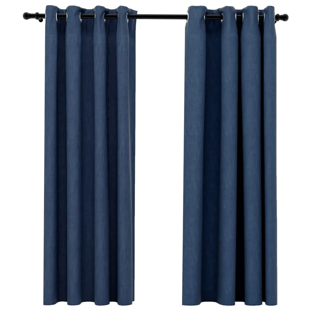 Плотные шторы Maison Exclusive с люверсами, под лен, 2 шт., синие, 140x175 см Prolenta