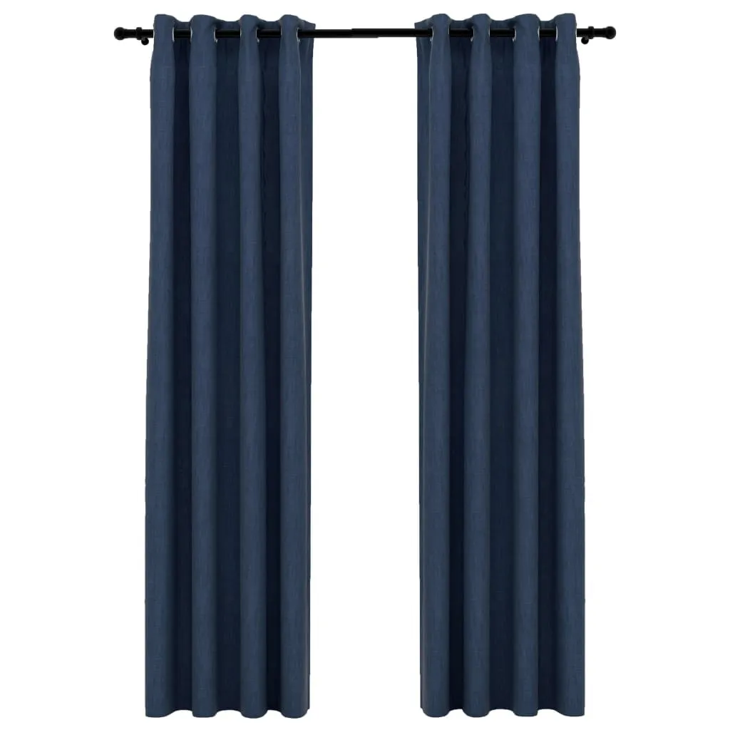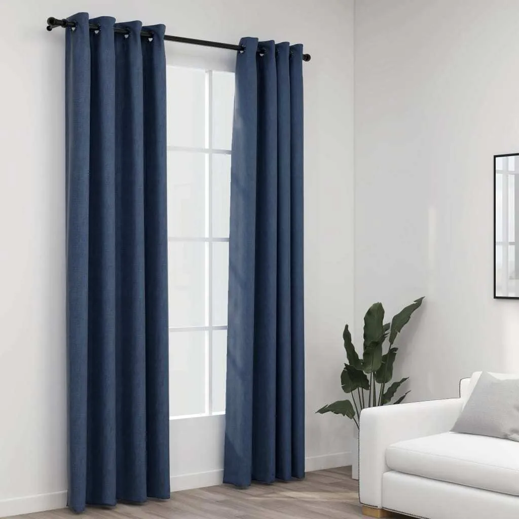 Плотные шторы Maison Exclusive с люверсами, под лен, 2 шт., синие, 140x225 см Prolenta