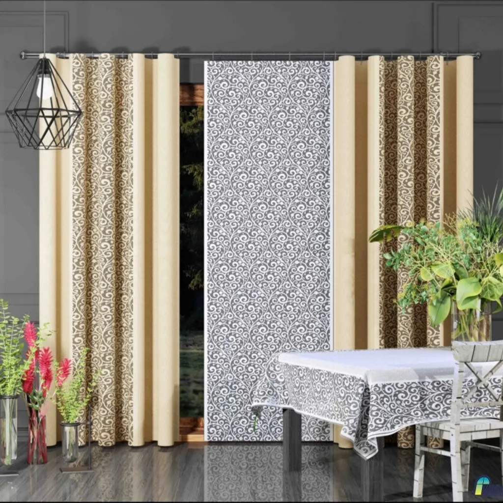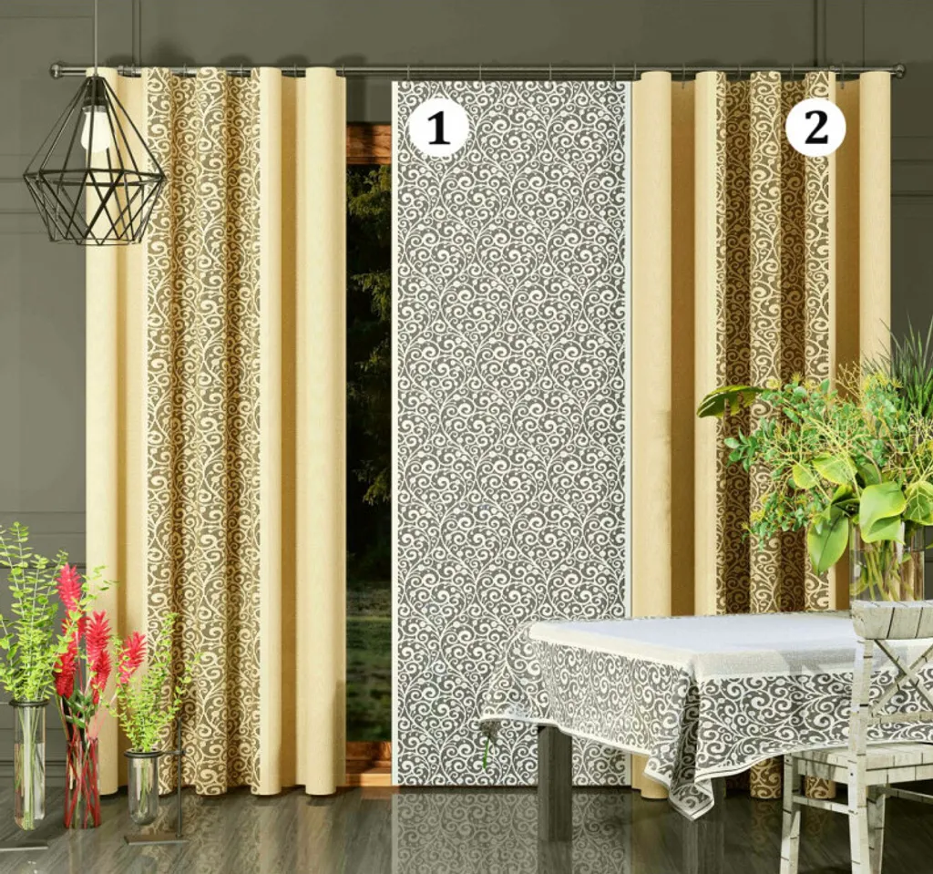 2 - AW626108 жаккардовая штора песочного цвета, шириной 150 см, слегка прозрачная, с типичной декоративной функцией.