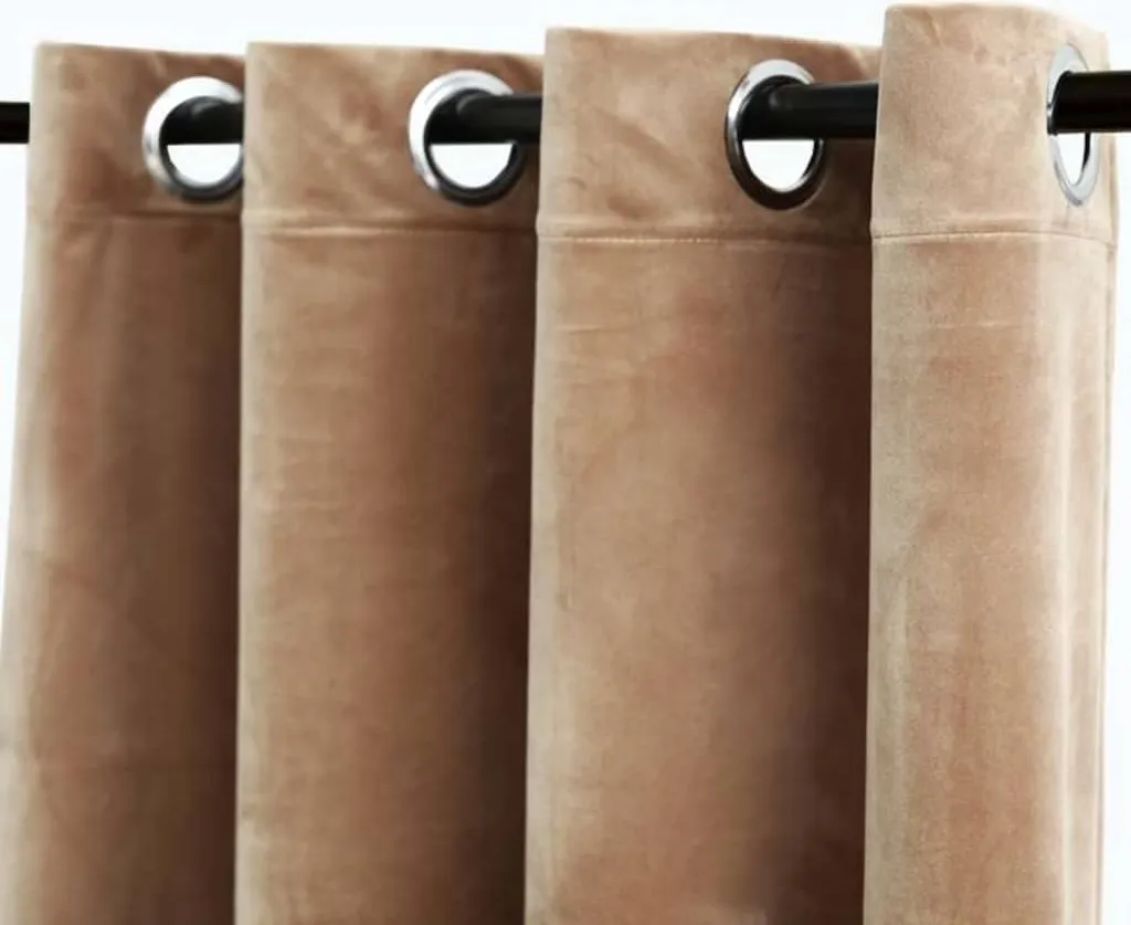 Эти элегантные бархатные шторы будут отлично смотреться в любой гостиной, спальне или офисе. Они обеспечивают необходимую приватность и блокируют большую часть падающего света. Бархатная ткань добавит уюта в ваш интерьер. Благодаря металлическим кольцам шторы легко повесить на любой карниз. Шторы можно стирать в стиральной машине. В комплект входят две шторы. Обратите внимание, что карниз в комплект не входит. Цвет: бежевый. Размер: 140 x 175 см (Ш x В). Материал: 100% полиэстер. Бархат с металлическими кольцами. В комплект входят две шторы.