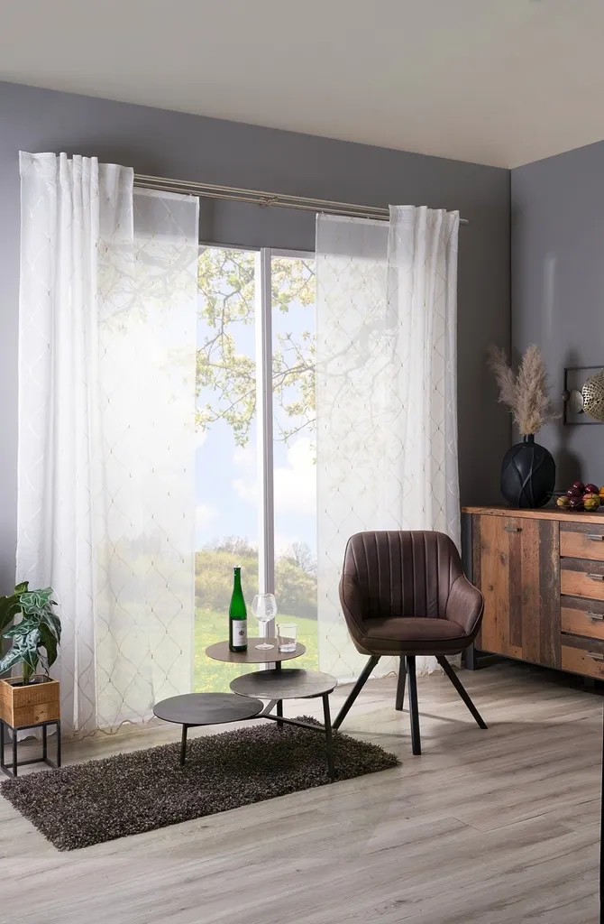 Изготовленная из высококачественного полиэстера, она прочная и простая в уходе. Поставляется как одно полотно, предлагая простой и элегантный способ украсить ваши окна и создать уютную атмосферу в вашем доме.
