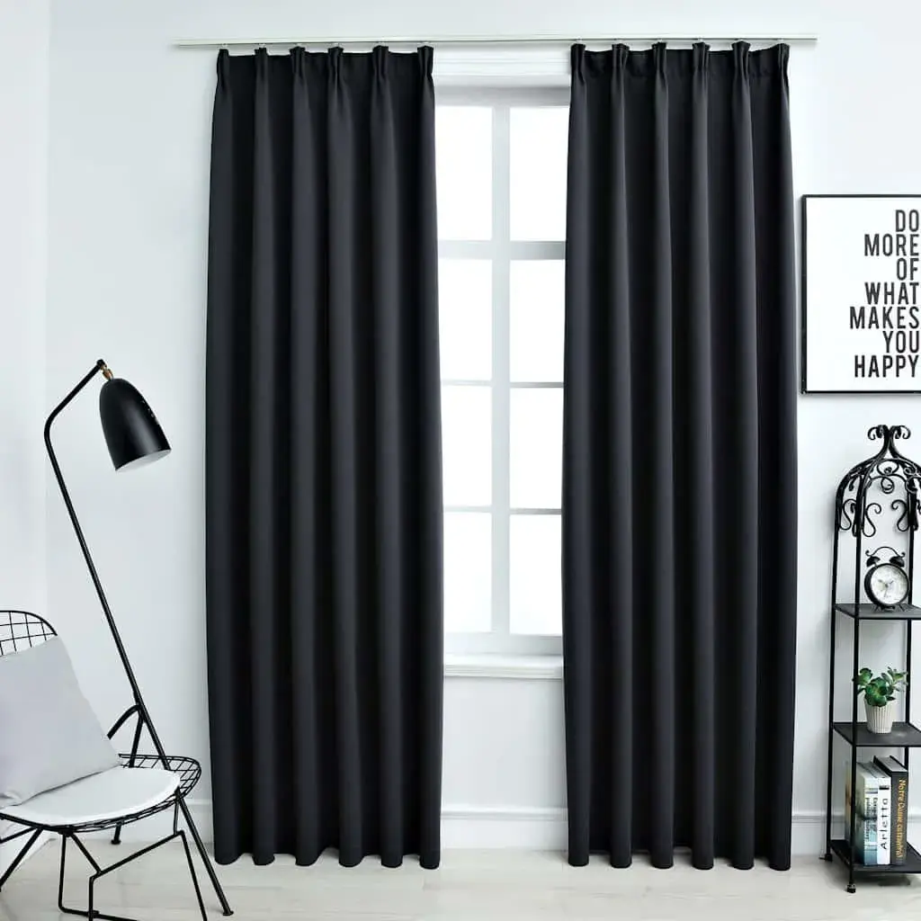 Плотные шторы с крючками, 2 шт., черные, 140x175 см vidaXL