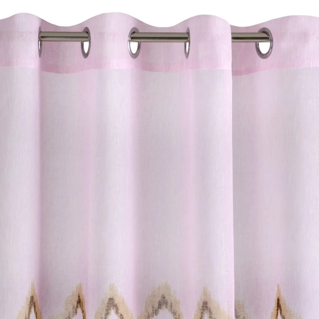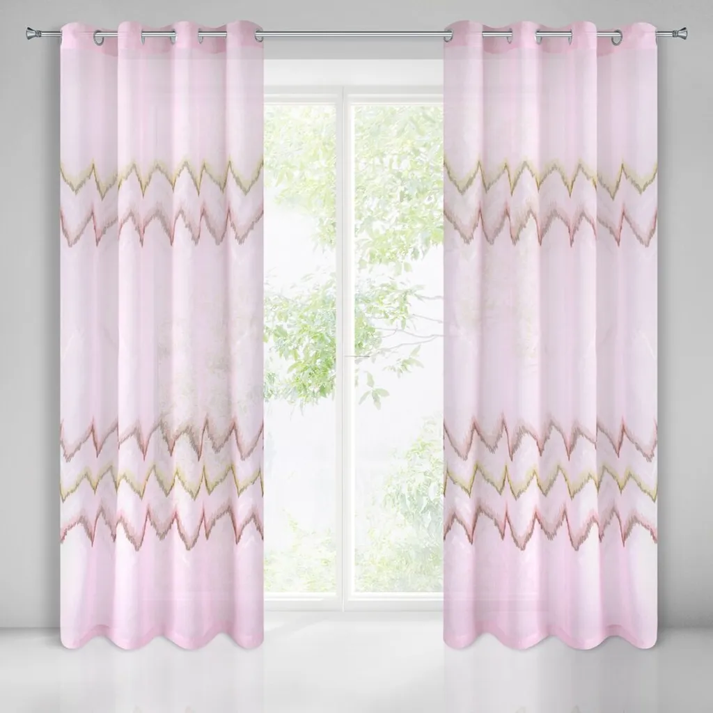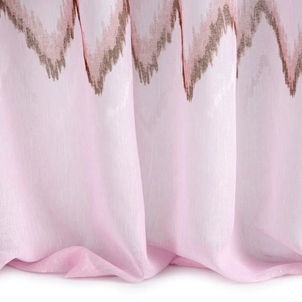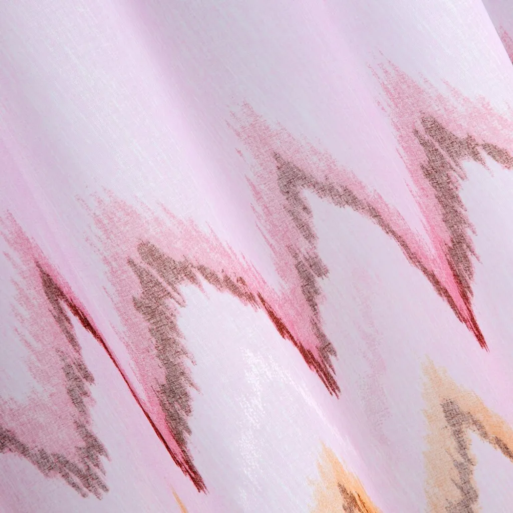 Современная штора NATHALIE украшена зигзагообразным узором с тенями. Люверсы в верхней части карниза позволяют нежной ткани драпироваться мягкими волнами. Такая система подвешивания позволяет быстро и легко менять штору. Симметричный принт добавляет динамичности в интерьер, а приятная, мягкая текстура тепло-розовой ткани прекрасно дополняет интерьер. Идеально подходит для интерьера в стиле бохо.