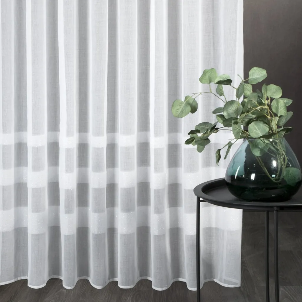 Выполнена из легкой матовой этаминовой ткани, украшенной снизу тремя мерцающими полосками мохеровой нити. Дизайн сочетает в себе гламурный шик и непринужденную элегантность. Эта белая штора идеально дополнит современный интерьер. Ее плотное плетение тонко фильтрует излишки солнечного света, что делает ее особенно подходящей для комнат с большим количеством солнечного света. Практичные люверсы позволяют легко сменить декор в мгновение ока, а ткань ложится мягкими, ровными волнами. Технические характеристики: Ширина: 140 см Высота: 250 см Количество люверсов: 8 Диаметр люверсов: 4 см Состав: 100% полиэстер Допуск по размеру: +/- 3 смДоставка товаров осуществляется курьером или на пункт выдачи заказов.