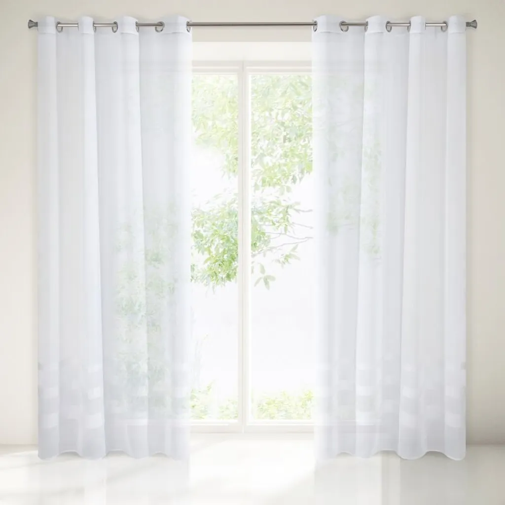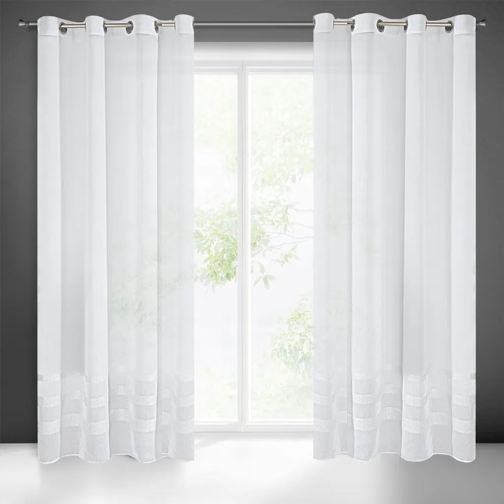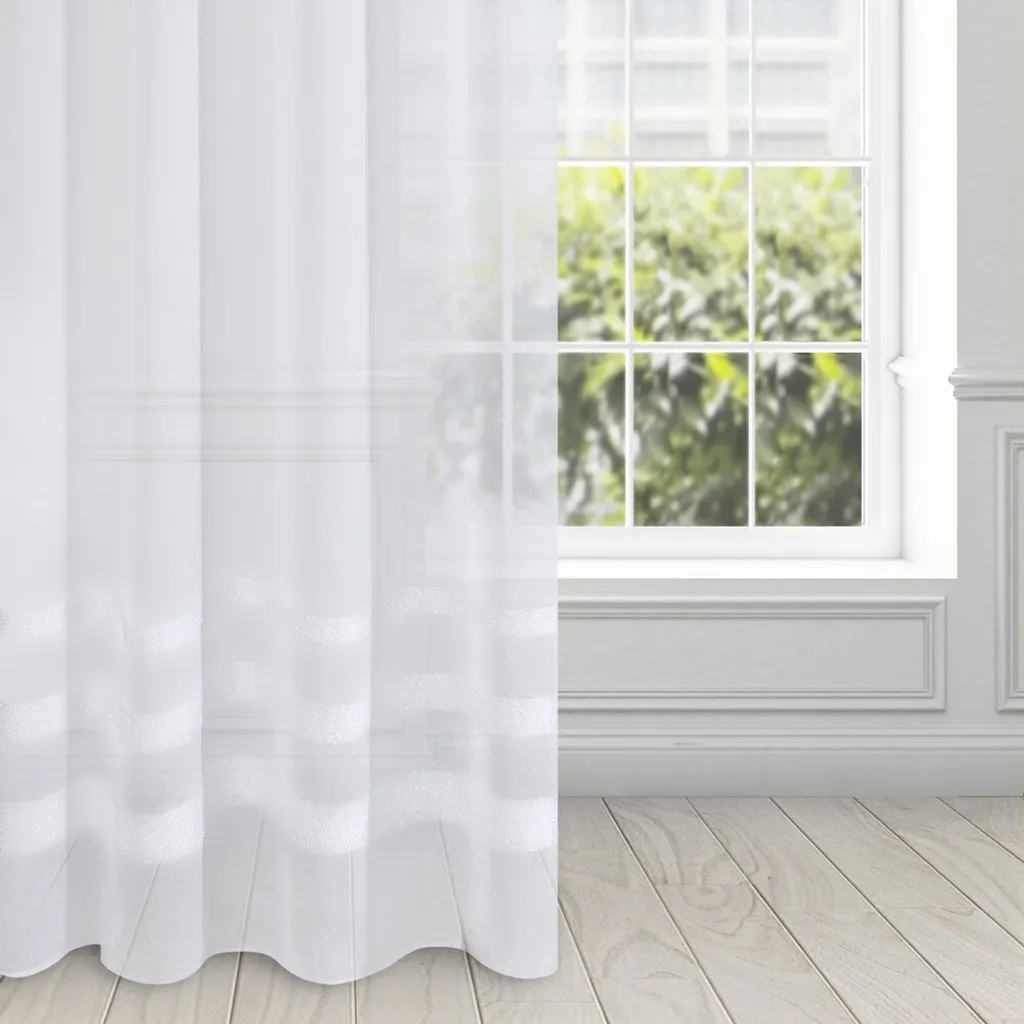 Эта белая штора из легкого матового этамина украшена внизу тремя мерцающими полосками из мохеровой нити. Дизайн сочетает в себе гламурный шик и непринужденную элегантность. Штора модного белого тона прекрасно впишется в современный интерьер, а ее плотная структура деликатно защитит комнату от чрезмерного солнечного света, что делает ее особенно подходящей для помещений с высокой степенью солнечного воздействия.Доставка товаров осуществляется курьером или на пункт выдачи заказов.