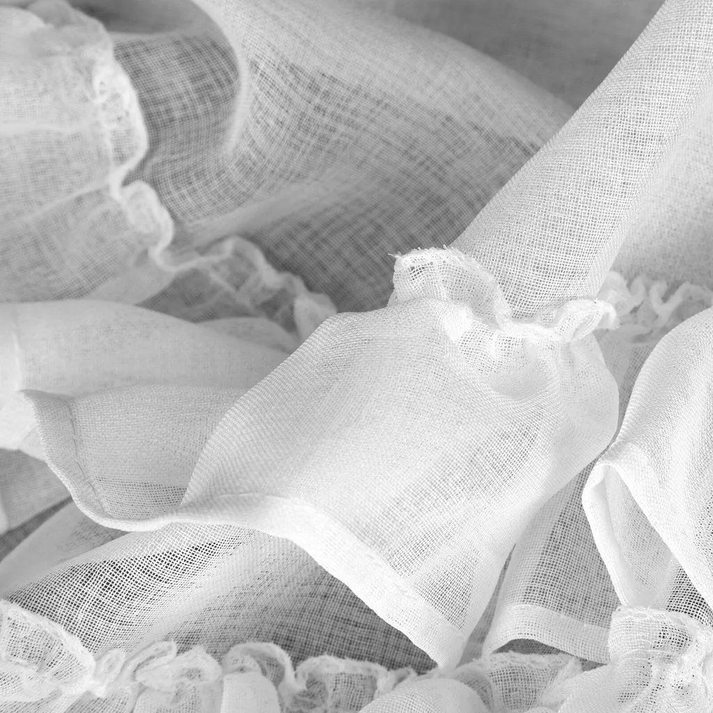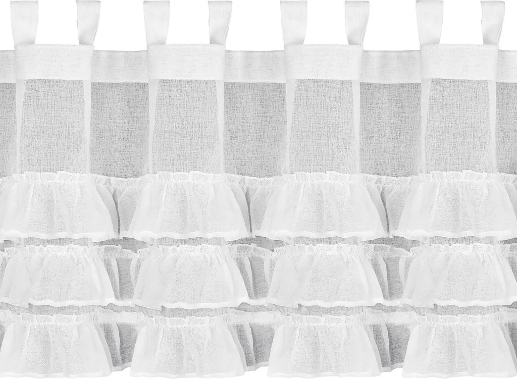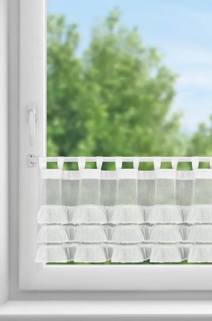 Покрывала - практичное решение для создания уединения на кухне. Благодаря своему декоративному узору они преображают кухню и придают ей уютную, слегка деревенскую атмосферу. Покрывала, подвешенные на оконную раму, пропускают много естественного света, обеспечивая при этом уединение. Карнизы для штор с изящными оборками создают приятную атмосферу на кухне. Небольшая занавеска изготовлена из белого матового этамина, легко поддается уходу и глажке. Практичные зажимы в верхней части занавески позволяют легко повесить ее на карниз. Классический дизайн карниза делает его подходящим как для традиционной, так и для современной кухни.