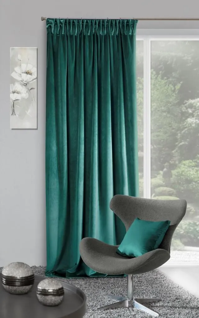 Модная коллекция штор RIA выполнена из мягкой бархатистой ткани с текстурой аксамита. Плотность и толщина ткани эффективно скрывают ваши окна, блокируя солнечный свет днем и обеспечивая уединение вечером. Присборенная тесьма на ленте обеспечивает равномерное распределение волн на ткани. Тяжелая, мягкая и непрозрачная ткань добавит элегантности и изысканности любому интерьеру. Высокая плотность (300 г/м²), гладкая, полуматовая поверхность и бархатистая текстура ткани придают шторам феноменальные светоотражающие свойства и создают потрясающий вид. Гладкая, однотонная ткань делает шторы RIA универсальным украшением, подходящим как для классических, так и для современных интерьеров, создавая изысканный фон для вашего декора. Соблюдая рекомендации по уходу, вы можете быть уверены, что ткань не сядет после стирки и не потребует утомительной глажки. Настоятельно рекомендуем. Технические характеристики: Ширина: 140 см Высота: 270 см Окантовка: 3 см Ширина ленты для сборки: 8 см Допуск по размеру: +/- 5% Состав: 100% полиэстер - бархат Плотность: 300 г/м². Плотная, гладкая, однотонная штора размером 140 x 270 см на ленте. Штора изготовлена из мягкого бархата с бархатистым блеском. Крепится на ленту для удобного подвешивания и создания красивой драпировки на окне. Эта мягкая и современная штора из элегантного бархата сделает ваш интерьер уютным и стильным. Классическая, универсальная ткань станет идеальным украшением для классических, современных и элегантных интерьеров. Благодаря своей плотности штора хорошо закрывает окно и добавляет комнате нотку интимности. Цвет: темно-бирюзовый. Плотность: 290 г/м².