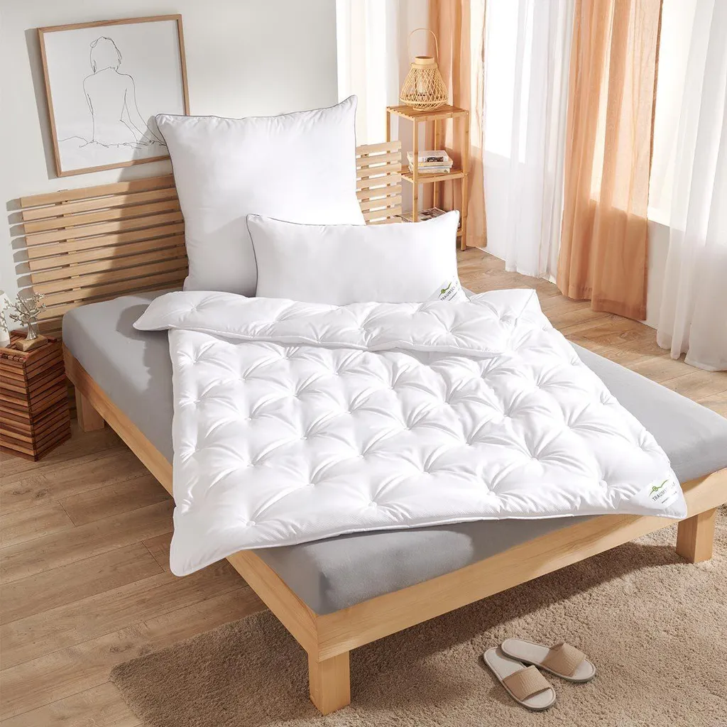 Благодаря среднему соотношению тепла к весу одеяло идеально подходит в качестве одеяла на весь год - не слишком теплое и не слишком прохладное.