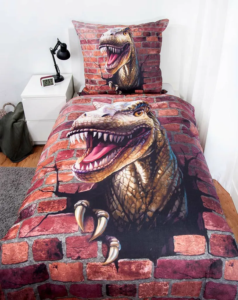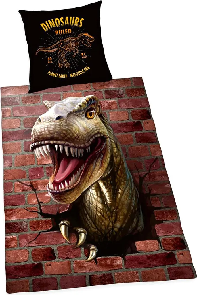 Постельное белье HERDING с 3D-эффектом Dino 140/200, 70/90 100% хлопок Размеры: 1x 140/200, 1x 70/90 см Хлопковое постельное белье для большой кровати, дизайн пододеяльника и наволочки с каждой стороны разный, застежка-молния, стирка при 60°C