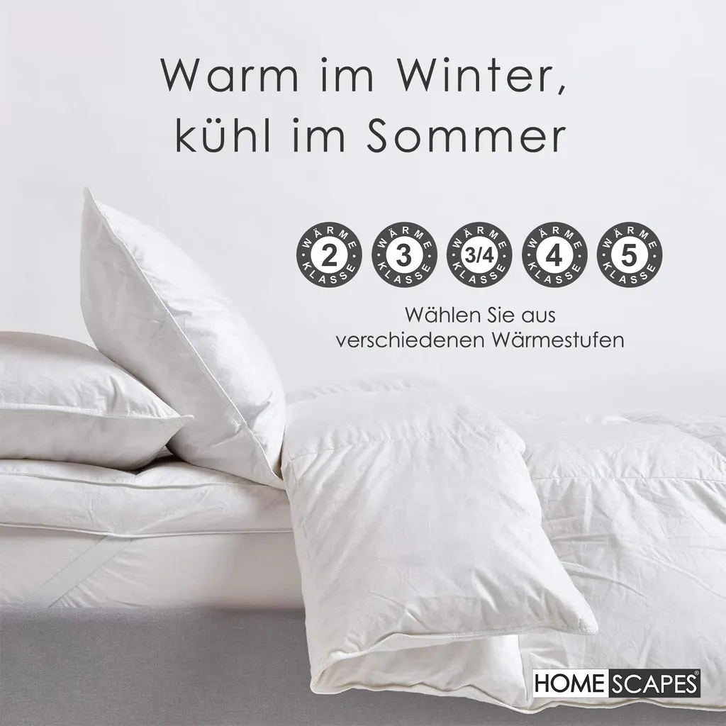 Очень большое, легкое летнее одеяло с пушисто-мягким наполнителем плотностью 210 г/м², состоящим на 85% из высококачественного утиного пера и на 15% из пушистого утиного пуха. Это одеяло размером 240 x 220 см идеально подходит для двуспальных кроватей или пар, предпочитающих особенно пышные одеяла.