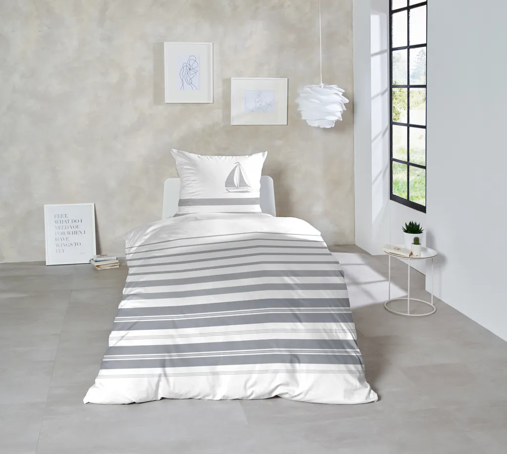 Простота в уходе и прочность: ренфорс особенно долговечен и сохраняет форму даже после многочисленных стирок. Его можно гигиенически стирать при температуре 60 °C, и он, как правило, оснащен практичной фирменной молнией. Материал: Хлопок (100% хлопок) Узор: Парусник Качество: Перкаль Тема: Морская тема Название серии: Морская тема Номер: D10-0692 Застежка: Молния Инструкции по уходу: Машинная стирка при 60 °C, безопасная сушка в стиральной машине Комплект постельного белья HAHN Percale из 2 предметов, состоящий из: 1 пододеяльник 135/200 см, 1 наволочка 80/80 см 100% хлопок, высококачественный натуральный продукт, естественно дышащий, мягкий на ощупь, гладкая поверхность, уникальная стирка, с застежкой-молнией, стандарт 100, легкий и воздушный, приятный для кожи, можно стирать при температуре до 60 °C, можно сушить в стиральной машине