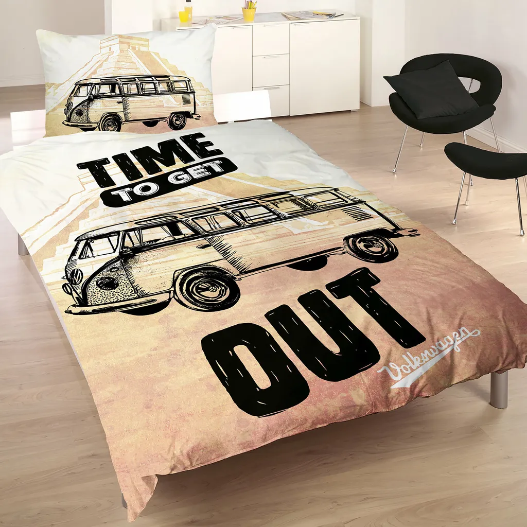 МАТЕРИАЛ - Пододеяльник Volkswagen Bulli приятен для кожи и дышащий, изготовлен из 100% хлопка и создает здоровую атмосферу для сна круглый год. Этот пододеяльник и наволочка VW Bulli, конечно же, AITEX - 2012PK0106.