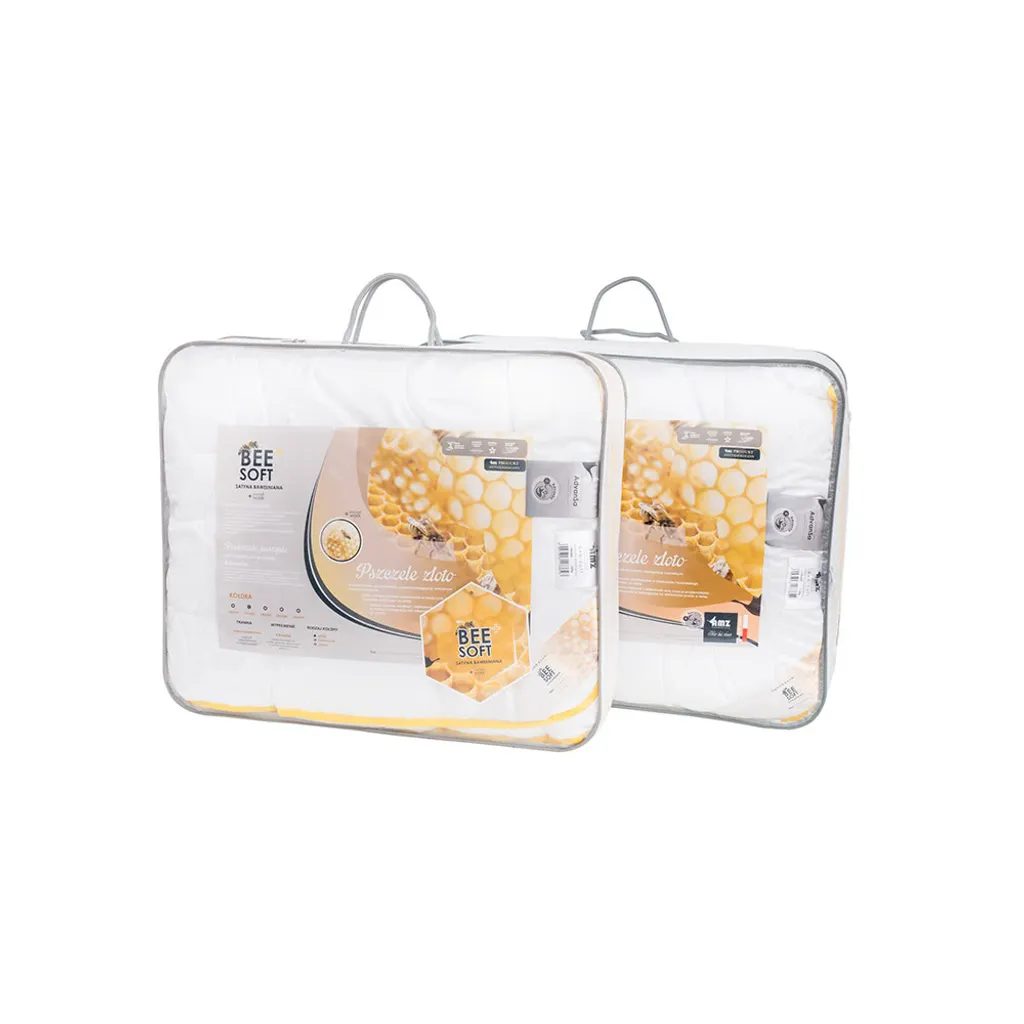 AMZ Quilt 100% Cotton Sateen 155 x 200 All-Season PREMIUM Bee Soft 100% Cotton Sateen Bee Soft - ХЛОПКОВАЯ ПРЯЖА ВЫСОЧАЙШЕГО КАЧЕСТВА С ИЗЫСКАННЫМ ПЕРЕПЛЕТЕНИЕМ, ОТДЕЛАННАЯ АНТИБАКТЕРИАЛЬНЫМ ПЧЕЛИНЫМ ВОСКОМ. Bee Soft, сотканная из хлопковой пряжи, дает ткань с плотным переплетением и характерной нежной текстурой. Использование высококачественной отборной пряжи создает эффект исключительной мягкости и нежности. Ткань отделана системой BEE SOFT - она покрыта миллиардами частиц пчелиного воска, которые обладают антибактериальными, противогрибковыми и препятствующими плесени свойствами, что делает ткань еще более мягкой и нежной. Помимо дополнительной безопасности, эта система придает ткани тонкий, изысканный блеск. Коллекция принадлежит к эксклюзивной линии и свидетельствует о высоком качестве материалов, используемых в ее производстве. Гипоаллергенное изделие, изготовленное с тщательным вниманием к деталям. Пряжа, из которой соткана эта уникальная ткань, выращена традиционными методами, без использования искусственных удобрений, пестицидов и химикатов. Эта ткань отличается исключительной мягкостью, нежностью, прочностью и чистотой. Рекомендуется для людей с чувствительной кожей или аллергией. Высококачественная, прочная ткань чехла - хлопковый тикинг - уникальный, нежный сатин плотностью 70 г/м². AMZ LUXFILL - многоканальное, высокоэластичное волокно в виде высокоэластичного нетканого материала. Элегантная упаковка. Стирать при температуре до 60°C. Изделия коллекции BEE SOFT легкие, теплые и долговечные. Изготовленные полностью из натурального сырья, они обладают способностью фильтровать воздух, поддерживая нужную температуру тела.