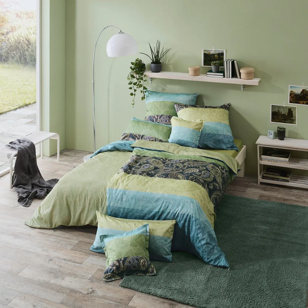 Erwin Müller Двустороннее постельное белье из мако-сатина. Полоски и узоры пейсли делают это элегантное постельное белье изысканным и притягивающим взгляд. Его можно переворачивать и переворачивать по желанию. Яркость и долговечность рисунка обусловлены высококачественной цифровой печатью. Насладитесь расслабляющим и восстанавливающим комфортом сна в этой шелковистой, мягкой, плотно сплетенной ткани с легким мерцанием. Побалуйте себя чувственными ощущениями от этой ткани. Гладкая, эластичная ткань не только дышащая, приятная для кожи и терморегулирующая, но также долговечная и простая в уходе.
