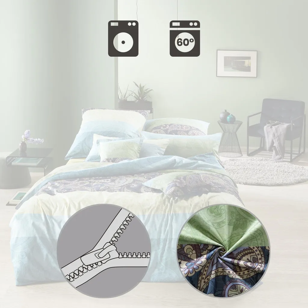 Erwin Müller Двустороннее постельное белье из мако-сатина. Полоски и узоры пейсли делают это элегантное постельное белье изысканным и притягивающим взгляд. Его можно переворачивать и переворачивать по желанию. Яркость и долговечность рисунка обусловлены высококачественной цифровой печатью. Насладитесь расслабляющим и восстанавливающим комфортом сна в этой шелковистой, мягкой, плотно сплетенной ткани с легким мерцанием. Побалуйте себя чувственными ощущениями от этой ткани. Гладкая, эластичная ткань не только дышащая, приятная для кожи и терморегулирующая, но также долговечная и простая в уходе.