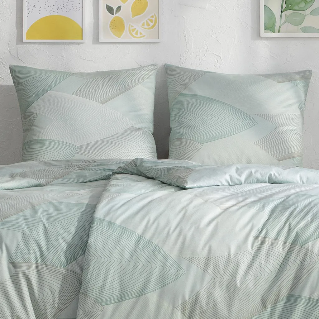 Постельное белье Estella Mako-Interlock-Jersey Atelier Phoenix 135x200 + 1 x Подушка 80 x 80 Graphic mint