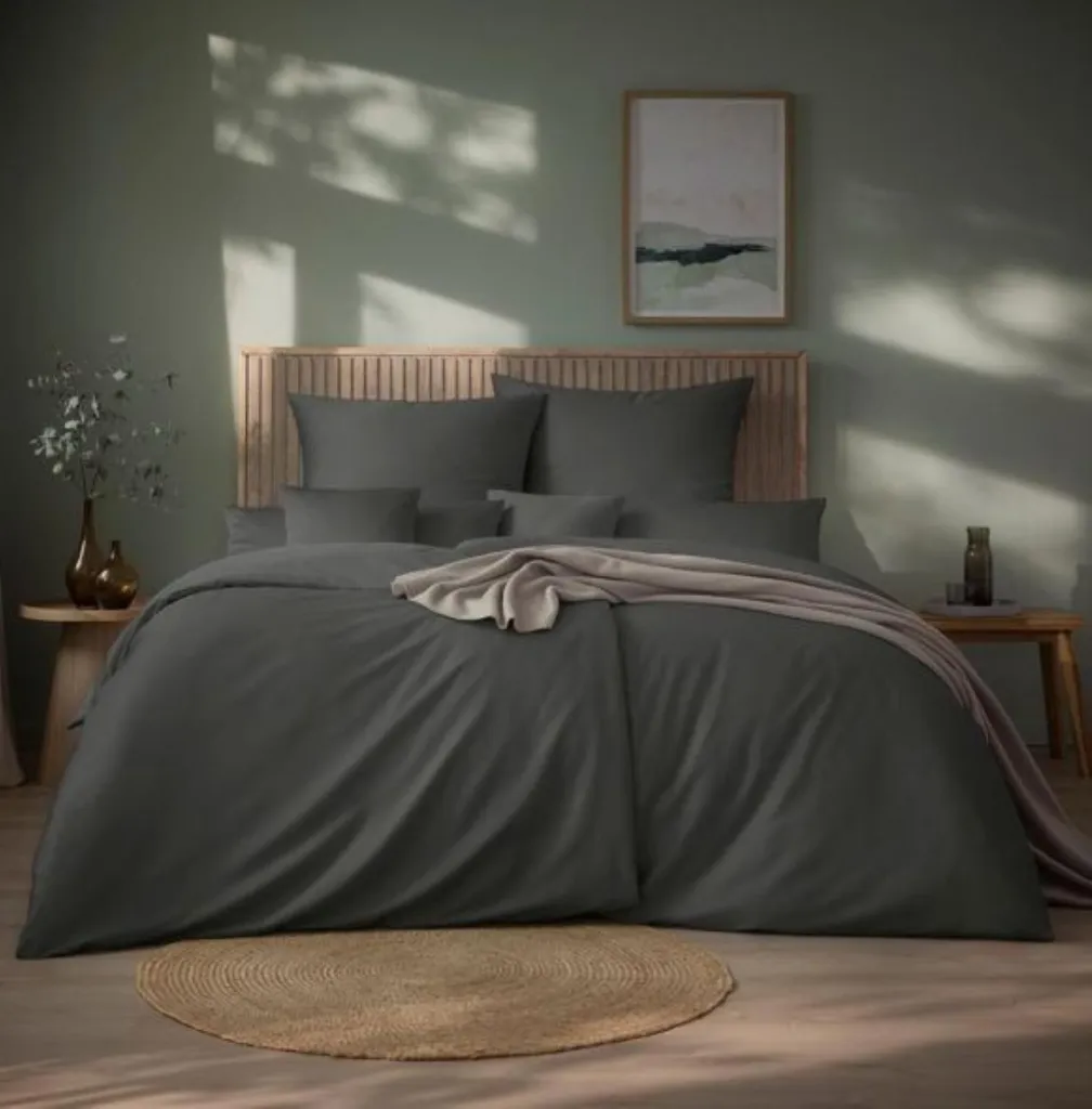 Коллекции постельного белья Estella определяют облик любой спальни и характеризуются широким ассортиментом дизайнов с высочайшими стандартами качества. Современные, графичные, цветочные, минималистичные или классические. В Estella как свободолюбивые мечтатели, так и стильные спящие найдут постельное белье с по-настоящему индивидуальным подходом. Чистый, весенний зеленый цвет постельного белья Valetta распространяется по всему комплекту, не затмевая витиеватые орнаменты, геометрические фигуры или другие узоры. Это открывает перед вами бесчисленные возможности придать комплекту свой уникальный характер. Украсьте свое жилое пространство яркими весенними оттенками зелени, которые вы можете комбинировать по своему вкусу. Постельное белье из сатина Mako впечатляет своей эластичной и дышащей тканью, изготовленной из 100% тончайшего хлопкового волокна (длинноволокнистого, суперчесаного, Nm 70/1). Это означает, что 70 метров пряжи весят всего 1 грамм. После плетения в характерном сатиновом переплетении ткань имеет гладкую, ровную поверхность, отличается особой прочностью на разрыв, долговечностью, подходит для сушки в сушильной машине и проста в уходе.
