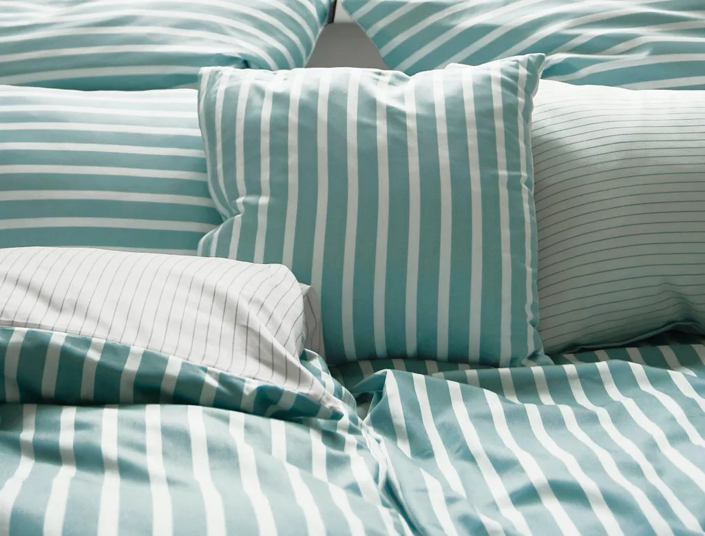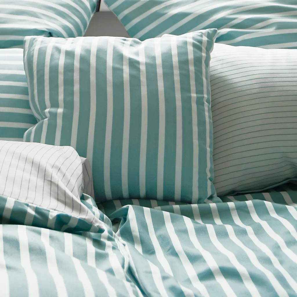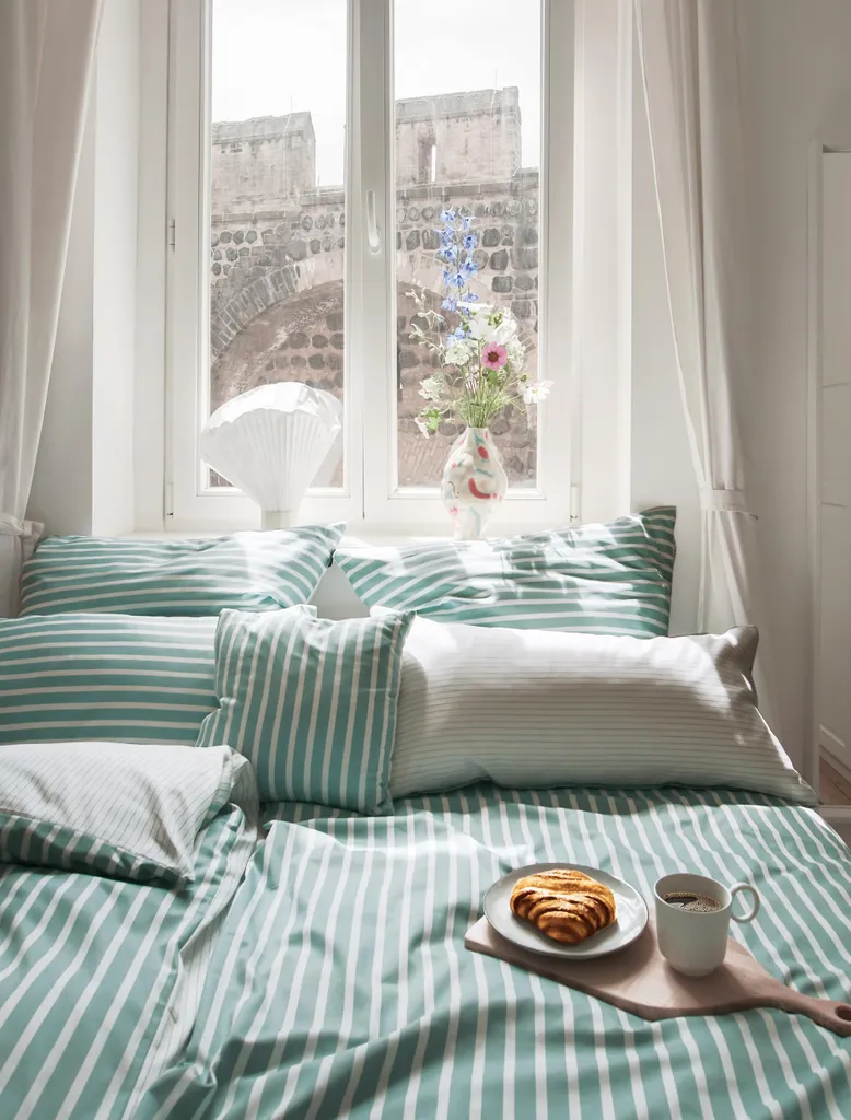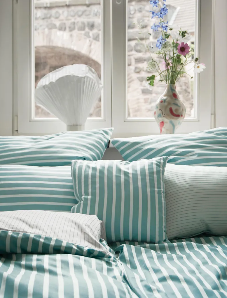 Irisette ESSENTIAL - Привет, Новый Свет! Высококачественное постельное белье Nora Mako-Satin с классическим полосатым рисунком было сфотографировано и представлено блогером интерьеров в Instagram "Noranilpferd" для нашей новой коллекции Irisette ESSENTIAL. Благодаря высококачественному процессу изготовления и приятному для кожи хлопку это постельное белье обладает отличными терморегулирующими свойствами и идеально подходит для круглогодичного использования в спальнях по всему миру. Будь то детская комната, студенческая квартира или уютная главная спальня, это постельное белье идеально подходит. Тончайшее атласное переплетение обеспечивает мягкое ощущение на коже. Это высококачественное постельное белье чрезвычайно дышащее, терморегулирующее и подходит для сушки в сушильной машине. Скрытая высококачественная молния позволяет быстро и легко менять постельное белье. Вот как описала это Нора: Классический дизайн обеспечивает сдержанную элегантность и отдых в моей самой важной комнате: спальне.