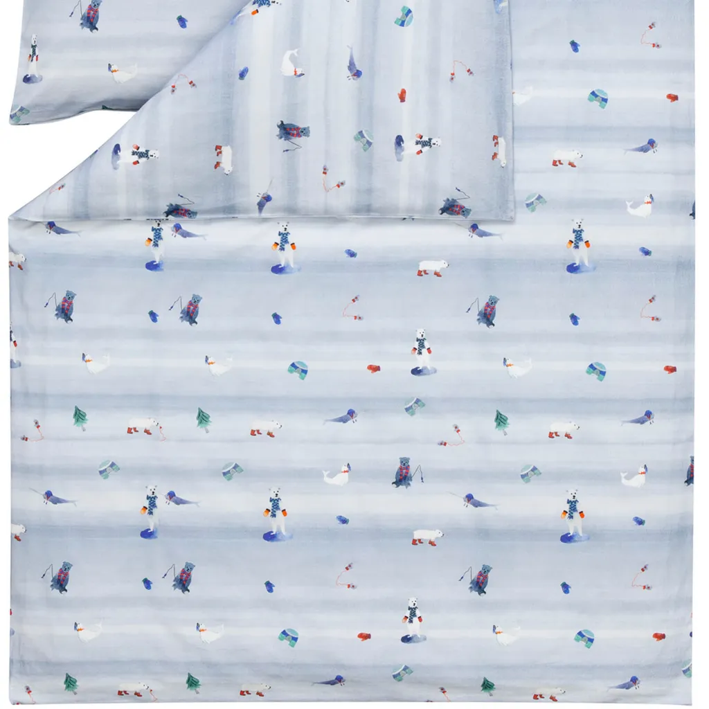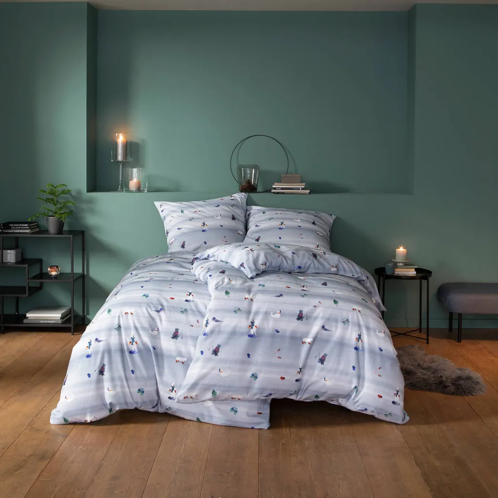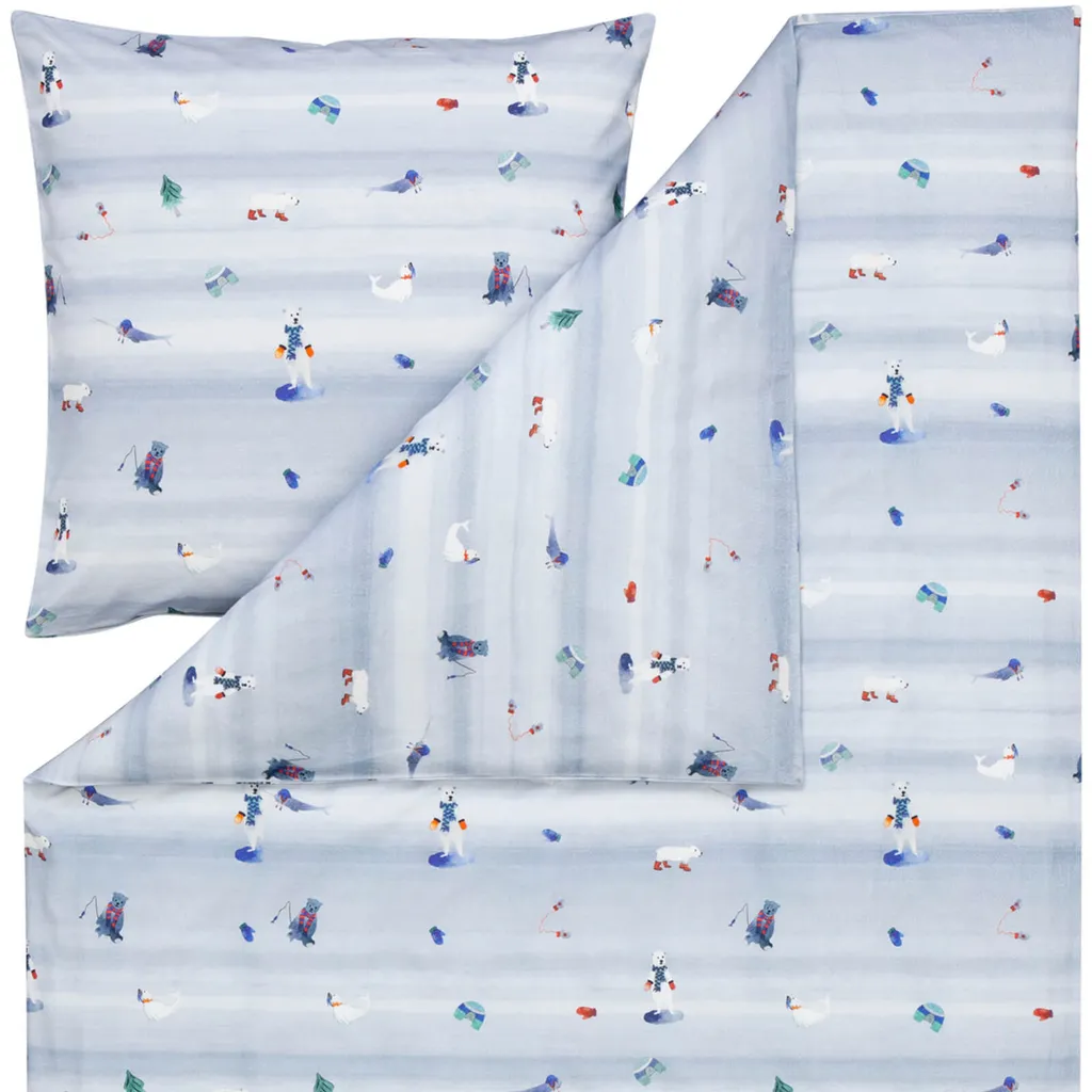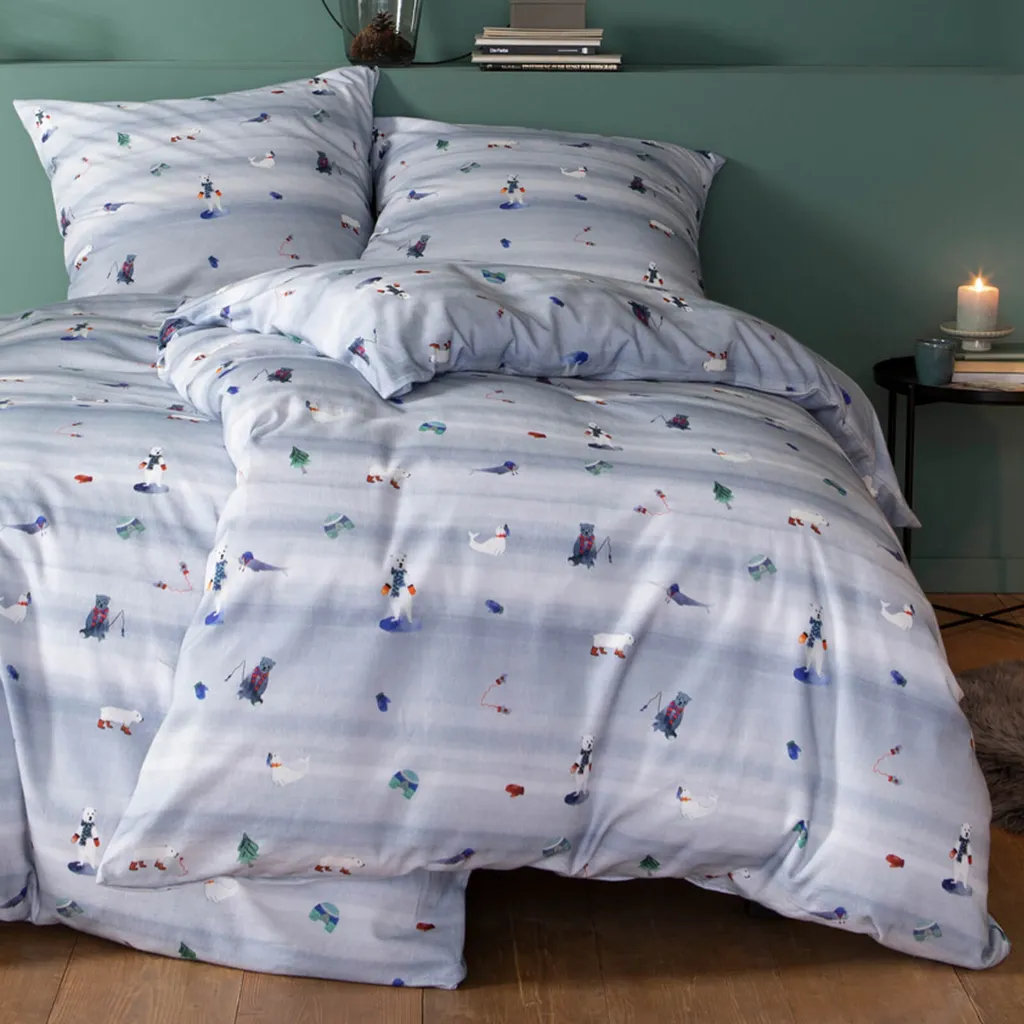 Коллекции постельного белья Estella определяют облик любой спальни и характеризуются широким ассортиментом дизайнов с превосходными стандартами качества. Современные, графические, цветочные, минималистичные или классические. С Estella как эксцентричные мечтатели, так и стильные спящие найдут постельное белье с индивидуальным подходом. С мягким арктическим постельным бельем Estella из 100% хлопковой фланели маленькие любители зимы будут в своей стихии. Голодные белые медведи, ловящие еду, встречают милых тюленей, ищущих свои перчатки. Иглу и рождественские елки украшают всю поверхность этого плюшевого комплекта постельного белья. Причудливые фигурки животных красиво выделяются на светло-голубом фоне и создадут вашим малышам зимнее настроение. Укутанные пушистой, мягкой и уютной фланелевой поверхностью, малыши смогут наслаждаться комфортной атмосферой в спальне даже в холодные зимние дни. Чтобы сохранить качество цвета, яркие изделия следует стирать при температуре, указанной на этикетке, в течение первых нескольких стирок, но не ниже. Декоративные элементы, показанные на рисунке, в комплект не входят. Различные настройки экрана могут привести к небольшим отклонениям в цвете по сравнению с оригиналом. Уютное, теплое и пушистое зимнее постельное белье из 100% хлопка в приятной фланели с очаровательными мотивами животных на фоне заснеженного пейзажа. Прочный, приятный для кожи и уютный комплект постельного белья с зимним рисунком на светло-голубом фоне. Продукт немецкого бренда. Дышащий, влагорегулирующий, терморегулирующий, воздухопроницаемый и приятно теплый, идеально подходит для холодных зимних ночей. Стандарт 100. Номер теста 05.0.