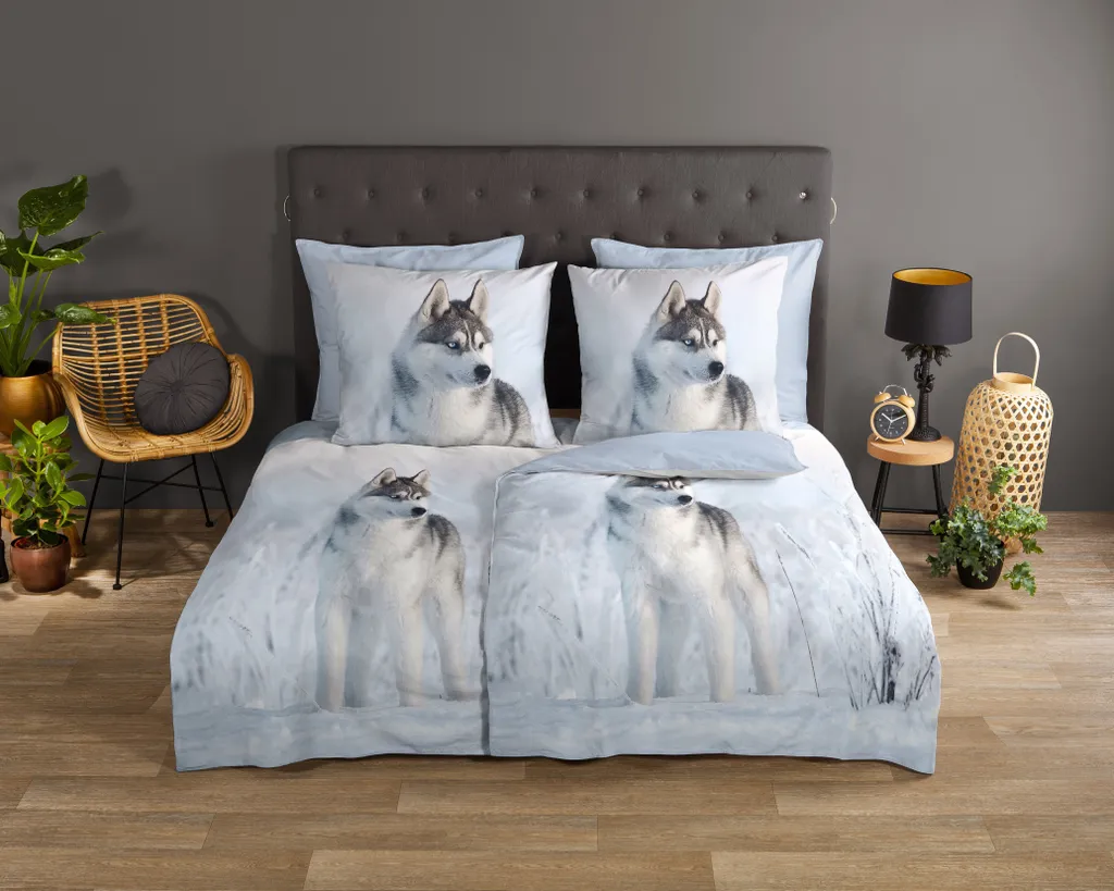 Пододеяльник Sachar от Good Morning с рисунком хаски в цвете Blue изготовлен из 100% хлопка. Этот материал дышащий, влагоотводящий, мягкий и гладкий на ощупь. Этот красивый пододеяльник украсит любую спальню и подойдет для любого сезона. Хлопковый пододеяльник прохладный летом и теплый зимой.